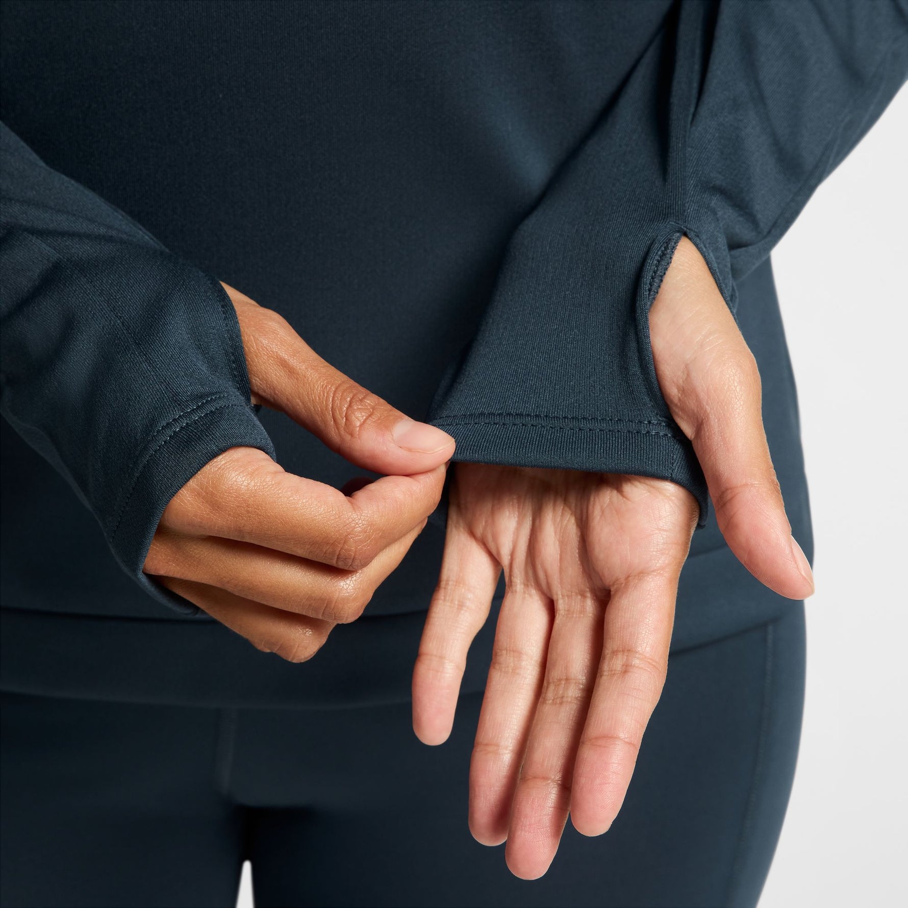 סוושירט מבית המותג NIKE, בטכנולוגיית Nike Dri-FIT המרחיקה את הזיעה מהעור לאידוי מהיר יותר. חורי אגודל שמאפשרים להחזיק את השרוולים במקומם בזמן תנועה.