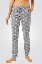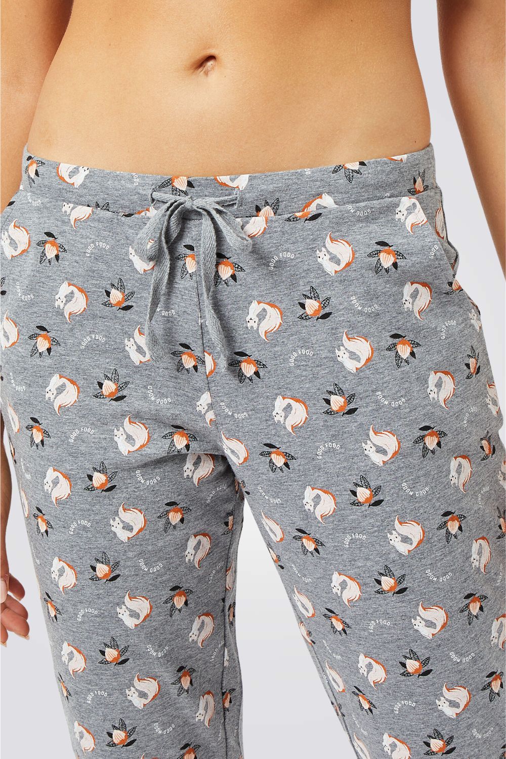 מכנסי פיג'מה ארוכים מבית המותג ETAM בגזרה ישרה וצמודה, בעלי רצועת מותן אלסטית עם קשירה ועם הדפסים מיוחים של סנאים.