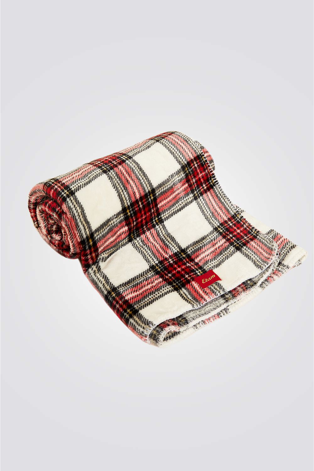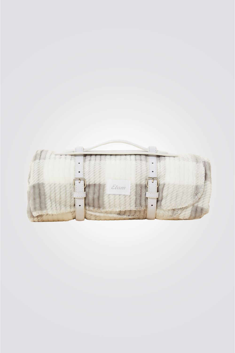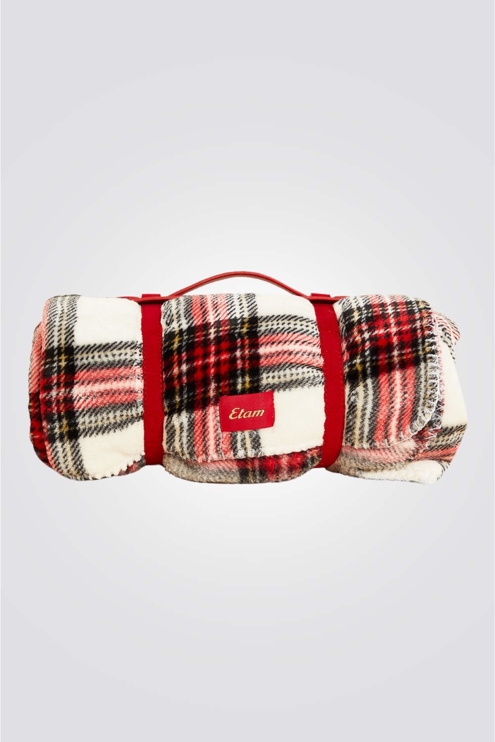 שמיכת חורף רכה ומפנקת מבית המותג הצרפתי ETAM בהדפס משובץ עם ידית נשיאה ואבזמי סגירה .
