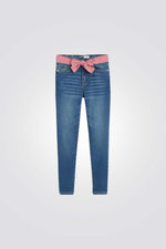 מכנסי ג'ינס לילדות עם חגורה ורודה
