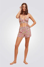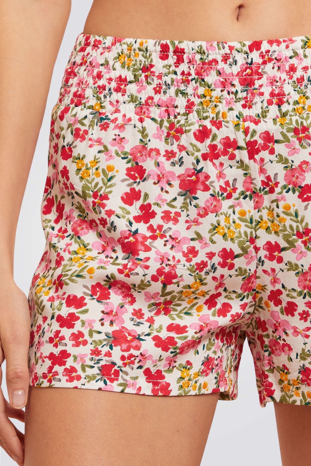 מכנסי פיג'מה מבית המותג הצרפתי ETAM העשויים מבד ויסקוזה רך, בעלת גזרה קצרה וצמודה, עם רצועת מותן אלסטית ועיצוב פרחוני מיוחד.