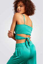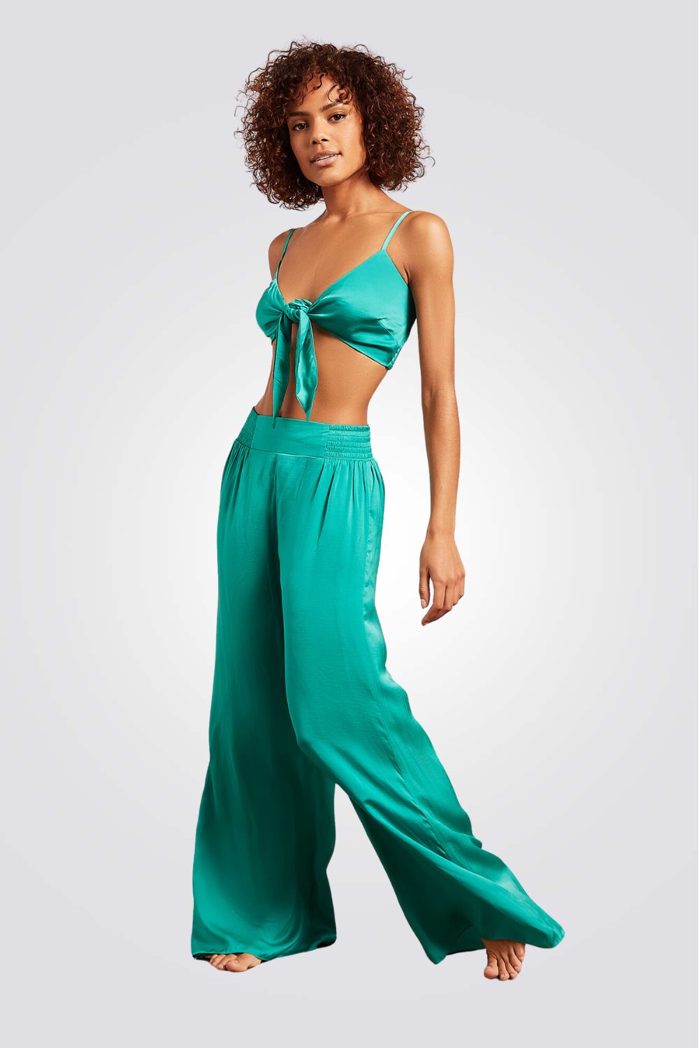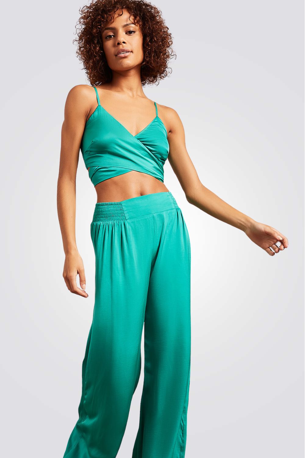 גופיית פיג'מה מבית המותג הצרפתי ETAM העשויה מבד פוליאסטר עדין, בעלת גזרת מעטפת קצרה עם קשירה בגב, כתפיות דקות ומתכווננות להתאמה אישית וגב אלסטי עם כיווצים.