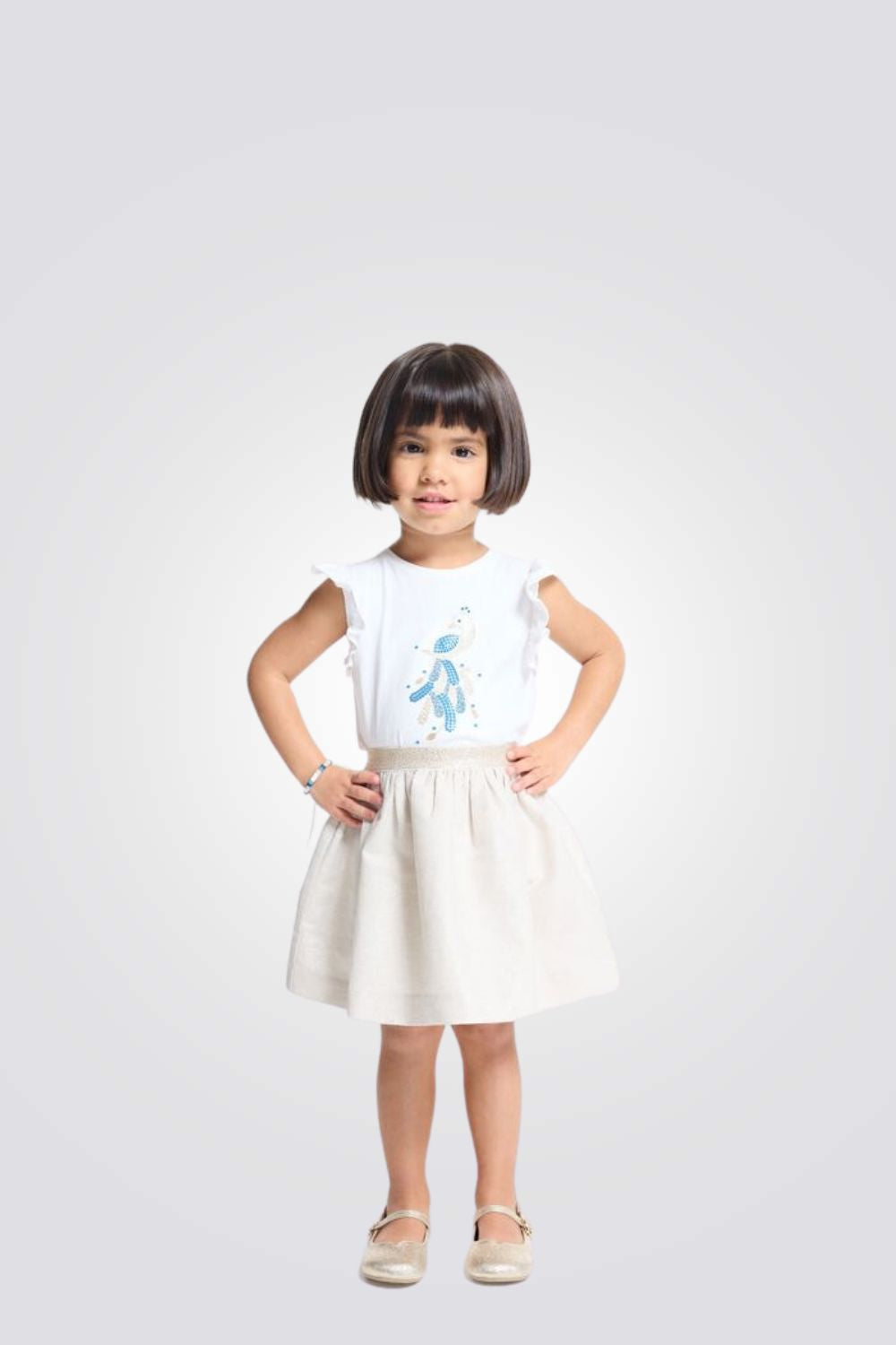 חצאית לתינוקות מבית המותג OBAIBI, בצבע זהב עם מותן אלסטית וסיומת מלמלה מתרחבת.