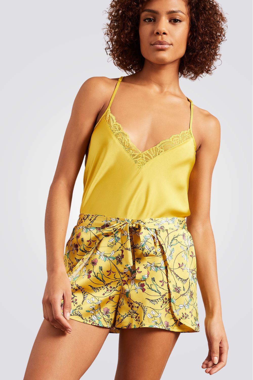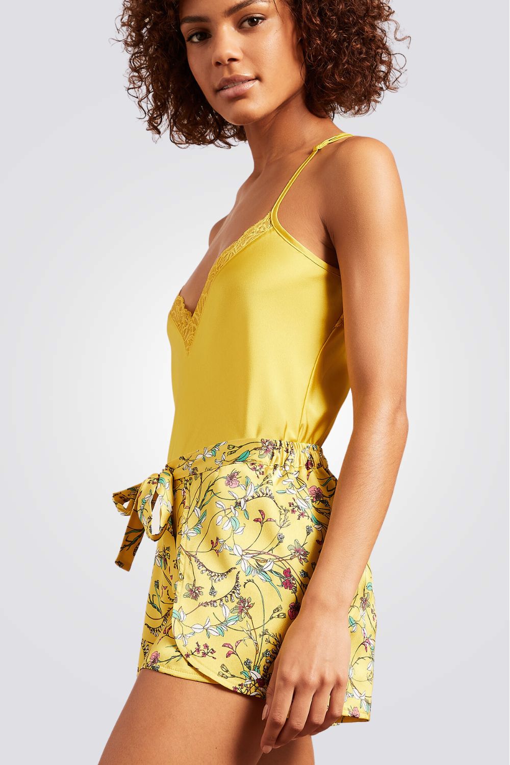 מכנסי פיג'מה קצרים SAFRAN בהדפס פרחוני צהוב