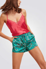 מכנסי פיג'מה קצרים SAFRAN בהדפס פרחוני ירוק