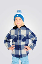 חולצה מכופתרת עם קפוצ'ון לילדים הדפס משבצות
