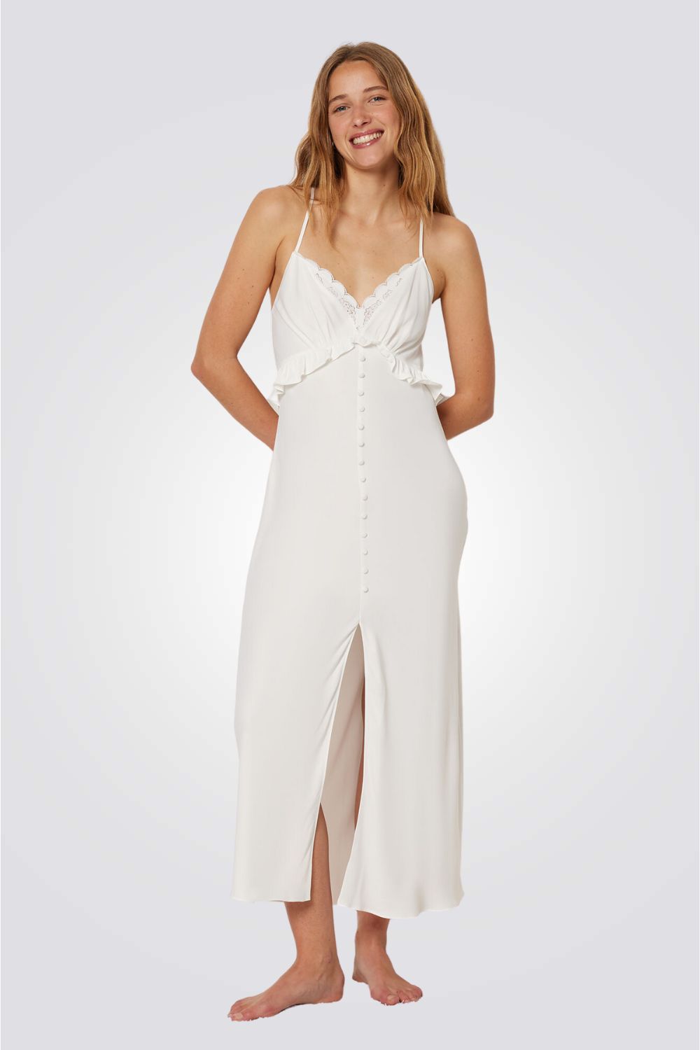 כותונת סאטן מבית המותג הצרפתי ETAM עשויה בד עדין ובגזרה ארוכה.