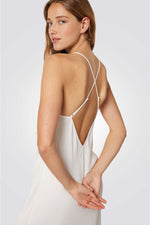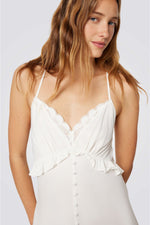 בעל שפע בחלקה הקידמי, מפתח וי עמוק עם מלמלה באיזור החזה, כתפיות דקות מתכווננות וגב חשוף.