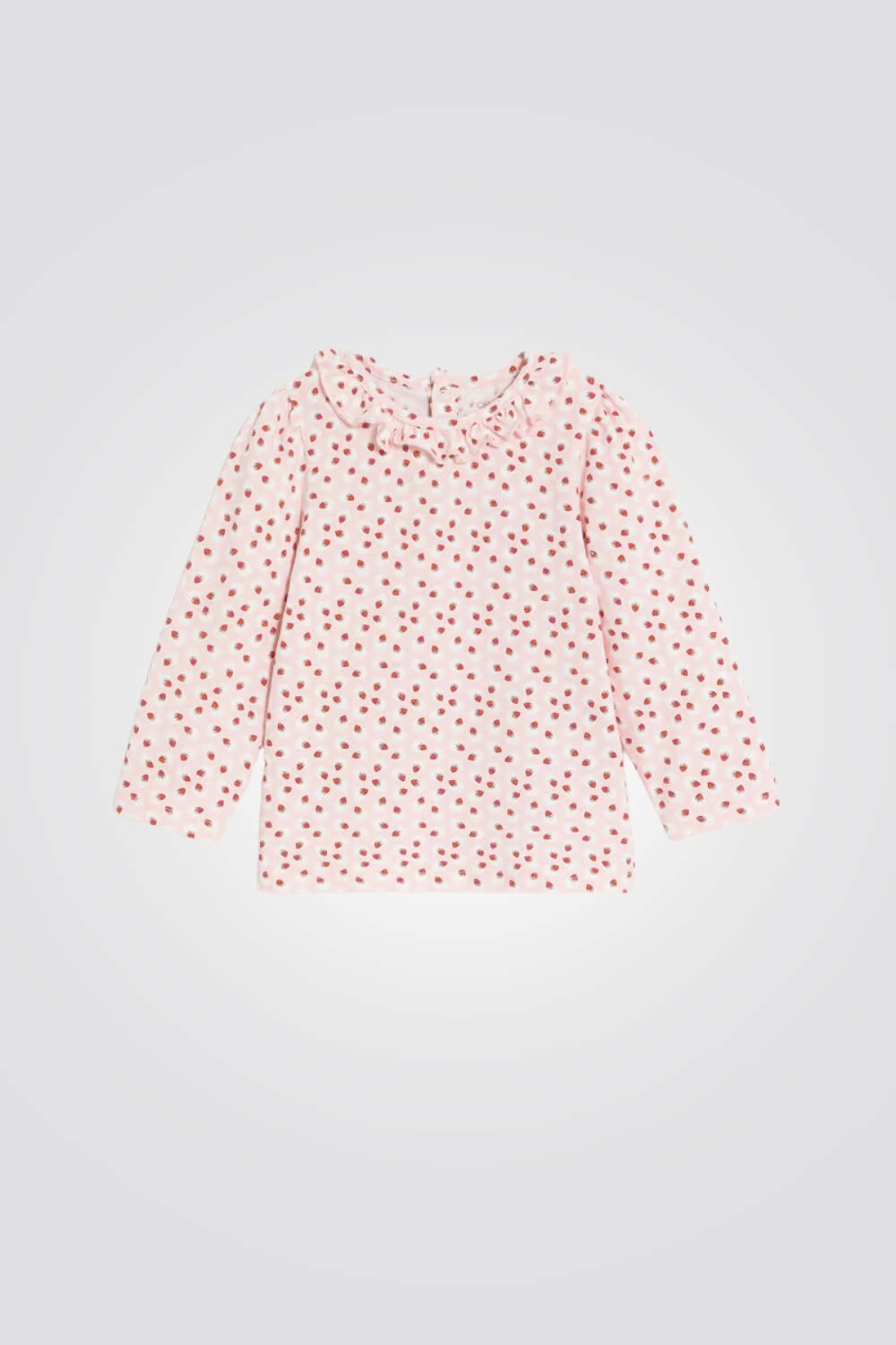 חולצת טישירט ארוכה לתינוקות בצבע ורוד עם הדפס פרחוני