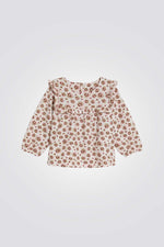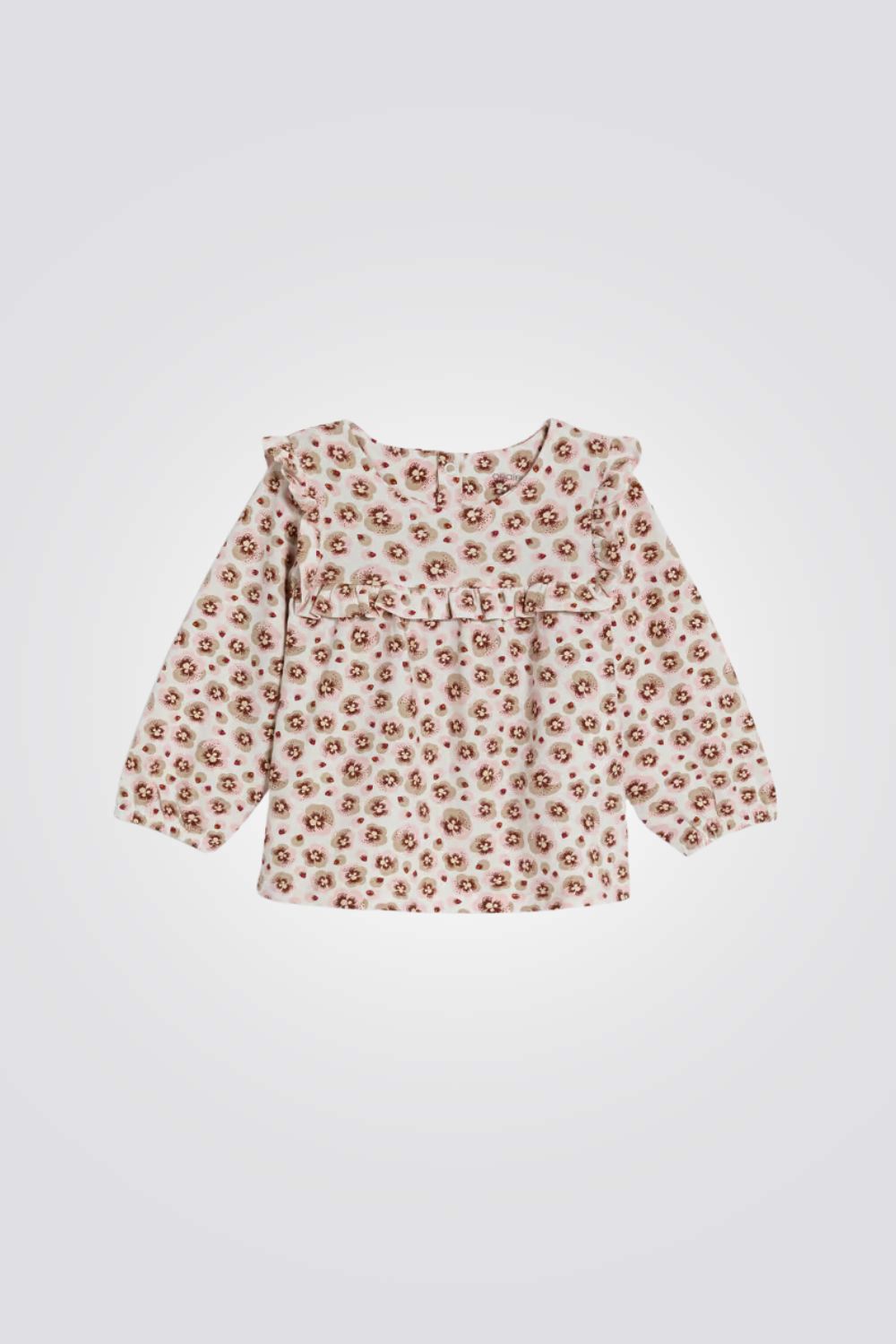חולצה לילדות בצבע בז' עם הדפס פרחוני