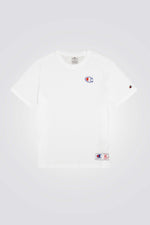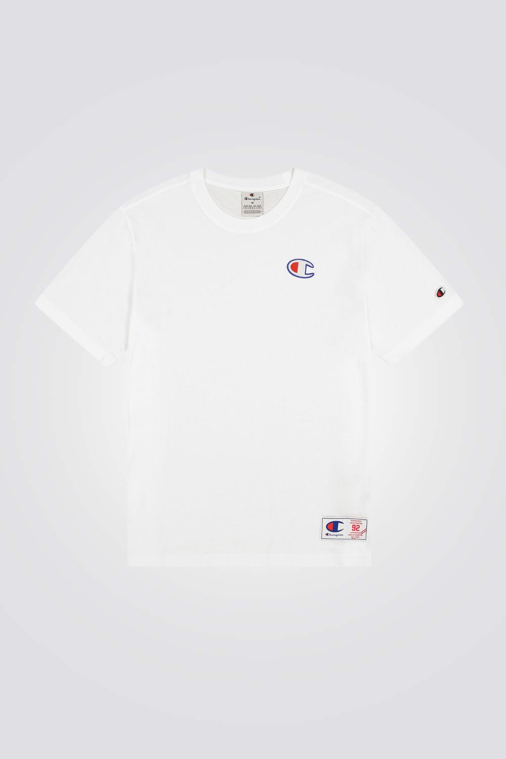 טישירט לגברים מבית המותג CHAMPION,בצבע לבן עם שרוולים קצרים וצווארון עגול , ולוגו המותג.