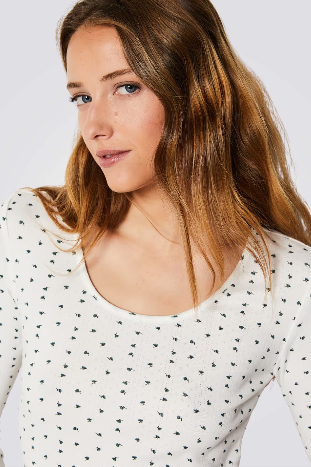 חולצת טריקו פיג'מה מבית המותג ETAM, בעלת גזרה ישרה עם צווארון עגול, שרוולים ארוכים והדפסים קטנטנים של עצים.
