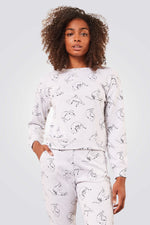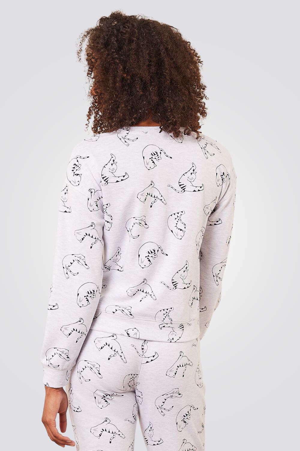 חולצת פיג'מה מבית המותג ETAM לנשים בצבע אפור, בעלת שרוולים ארוכים, עשויה מבד נעים ורך ועם הדפס חתולים.