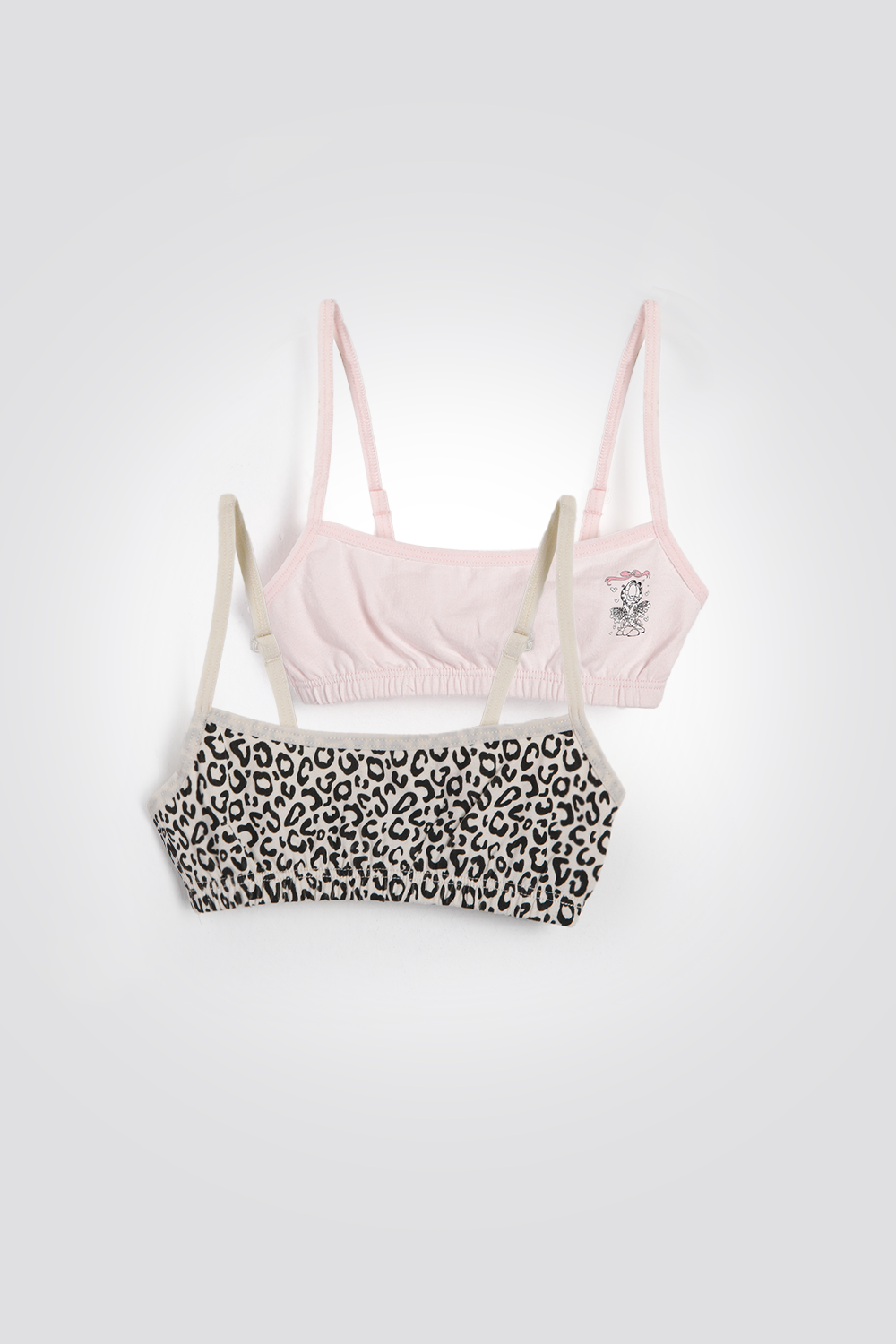 שתי גוזיות לבנות מבית המותג DELTA בעלות כתפיות דקות מתכווננות אחת במוטיב מדליק של גארפילד והשניה בהדפס מנומר.