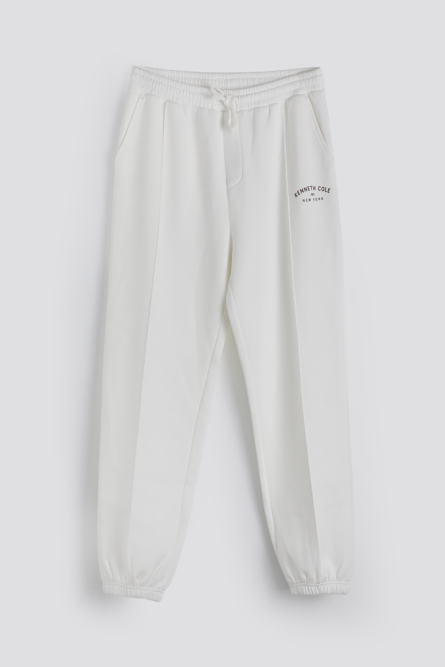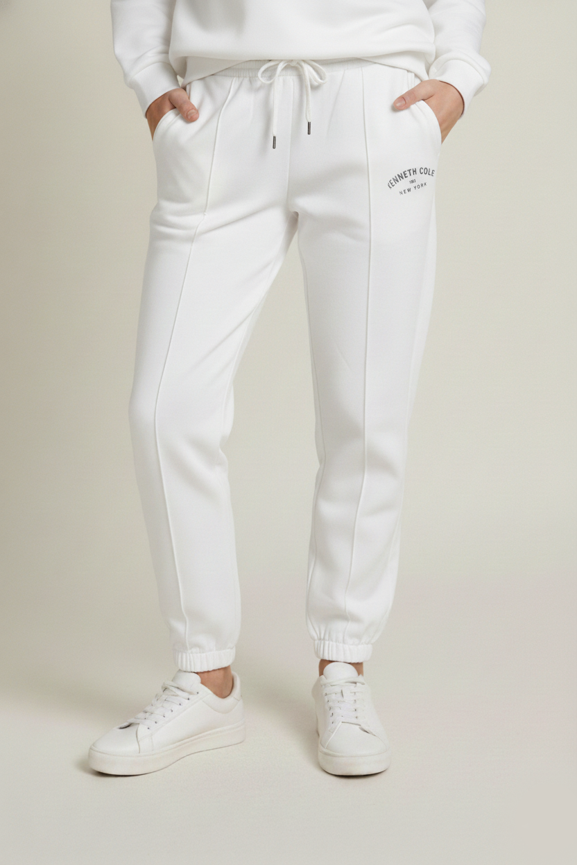 מכנסי טרנינג מבית המותג KENNETH COLE לנשים, עשויים מבד נוח ורך למגע, מתאימים לימים הקרים, מכילים גומי במותן ושרוכים לקשירה, כיסים בצדדים, גומי אלסטי בסיומת המכנסיים, מעוצבים עם תפרים קדמיים דקורטיביים ולוגו המותג בצד.