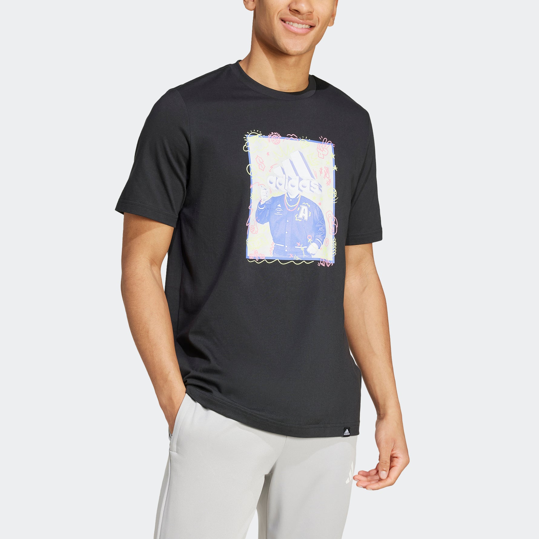 טישירט לגברים Doodle Graphic בצבע שחור