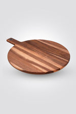 קרש חיתוך עגול מעץ מבית ARCOSTEEL. מתאים לשימוש יומיומי, עשוי עץ שיטה מובחר, שטיפה ידנית. מידות: קוטר 35 ס"מ, אורך כולל ידית הלוח 45 ס"מ, עובי הלוח 1.5 ס"מ