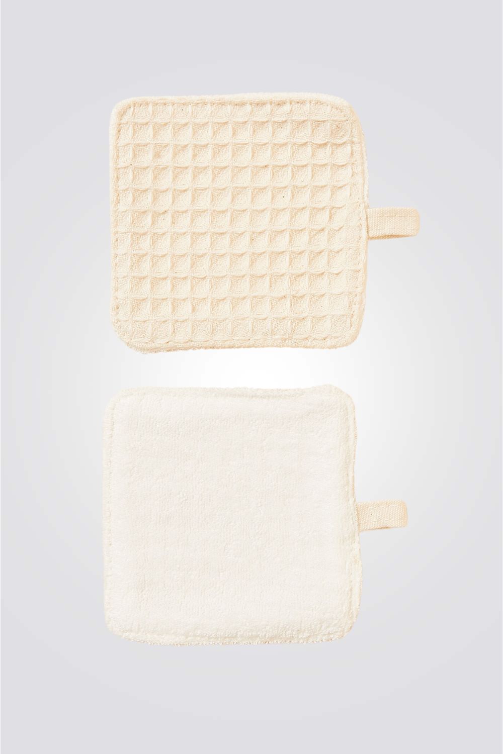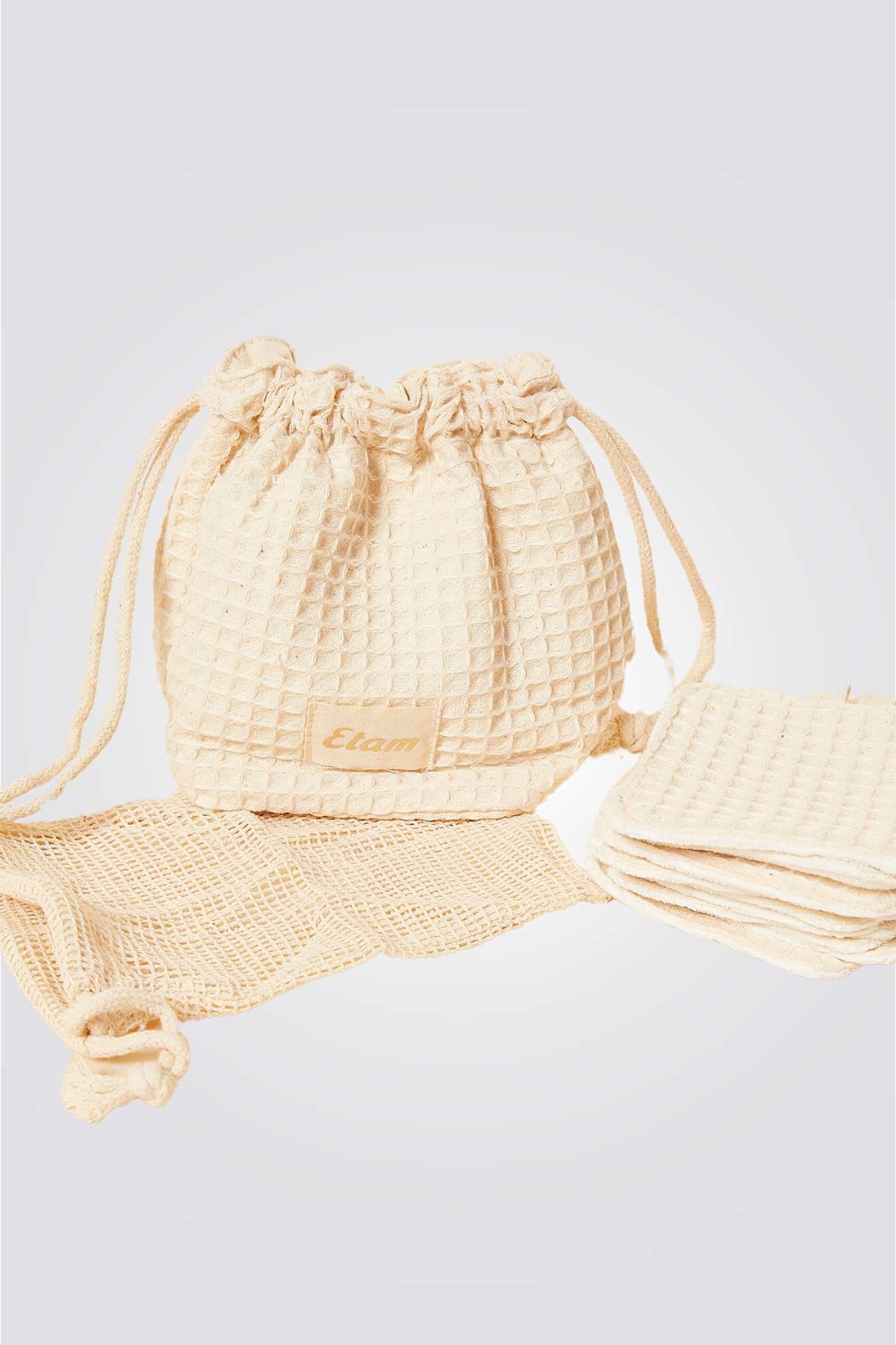 מארז אביזרי אמבט מבית המותג הצרפתי ETAM המורכב משני פדים לניקוי הפנים העשויים בד סינטטי בצבע שמנת.