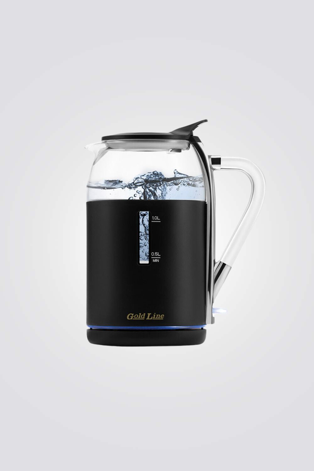 קומקום חשמלי מזכוכית בעיצוב יוקרתי.