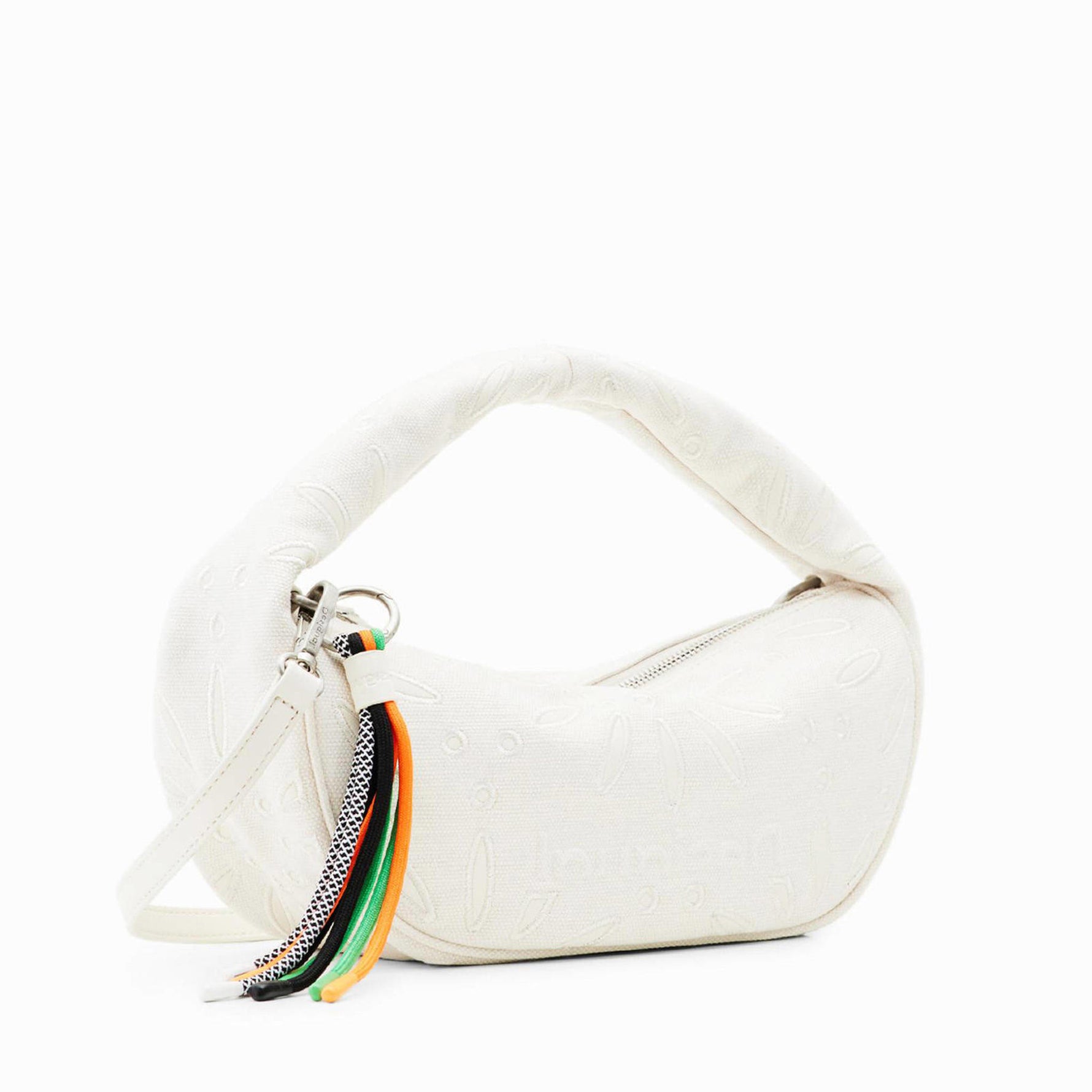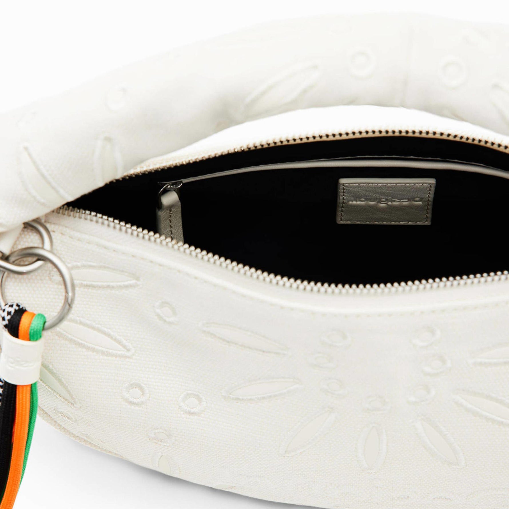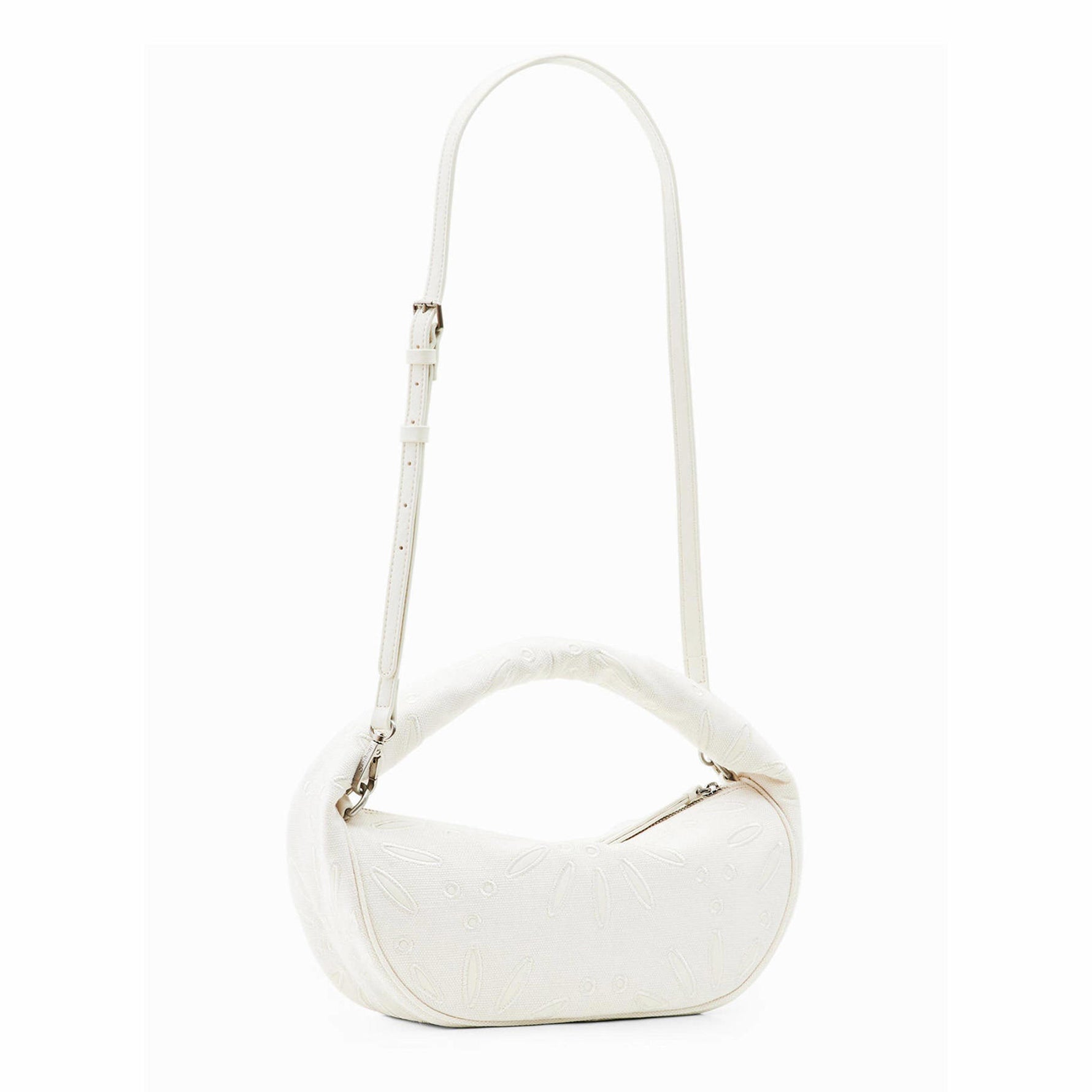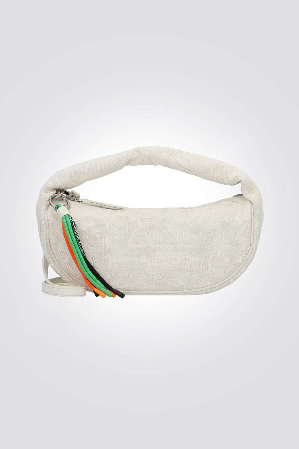 תיק צד מבית המותג DESIGUAL, בעיצוב קלאסי עם פרחים ולוגו המותג מוטבעים, רצועות מתכווננות, עשוי מטקסטיל איכותי, מידות 31X10X15 ס"מ