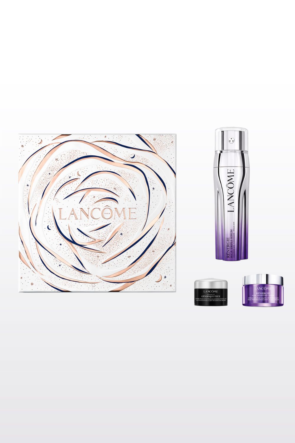 בנוסף לטריפל סרום (50 מ"ל) מכיל המארז גם שגרת טיפוח אנטי אייג'ינג מושלמת: רנרג'י H.P.N. 300 פפטידים קרם יום החדש (15 מ"ל) וג'ניפיק קרם עיניים (5 מ"ל).