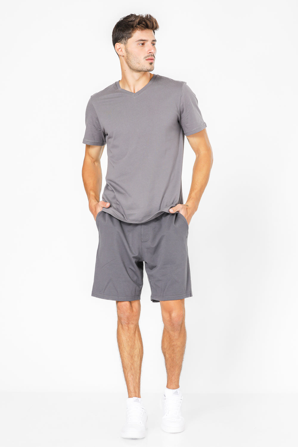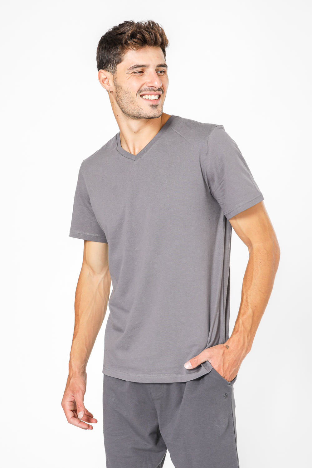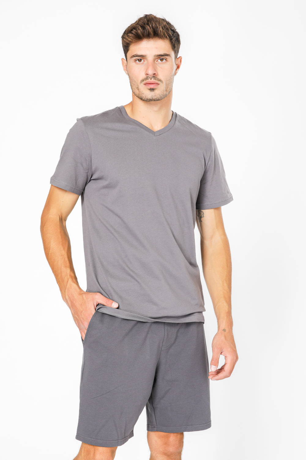 חולצה קצרה מבד סינגל ג’רסי בגזרה קלאסית עם שרוולים קצרים וצווארון וי.