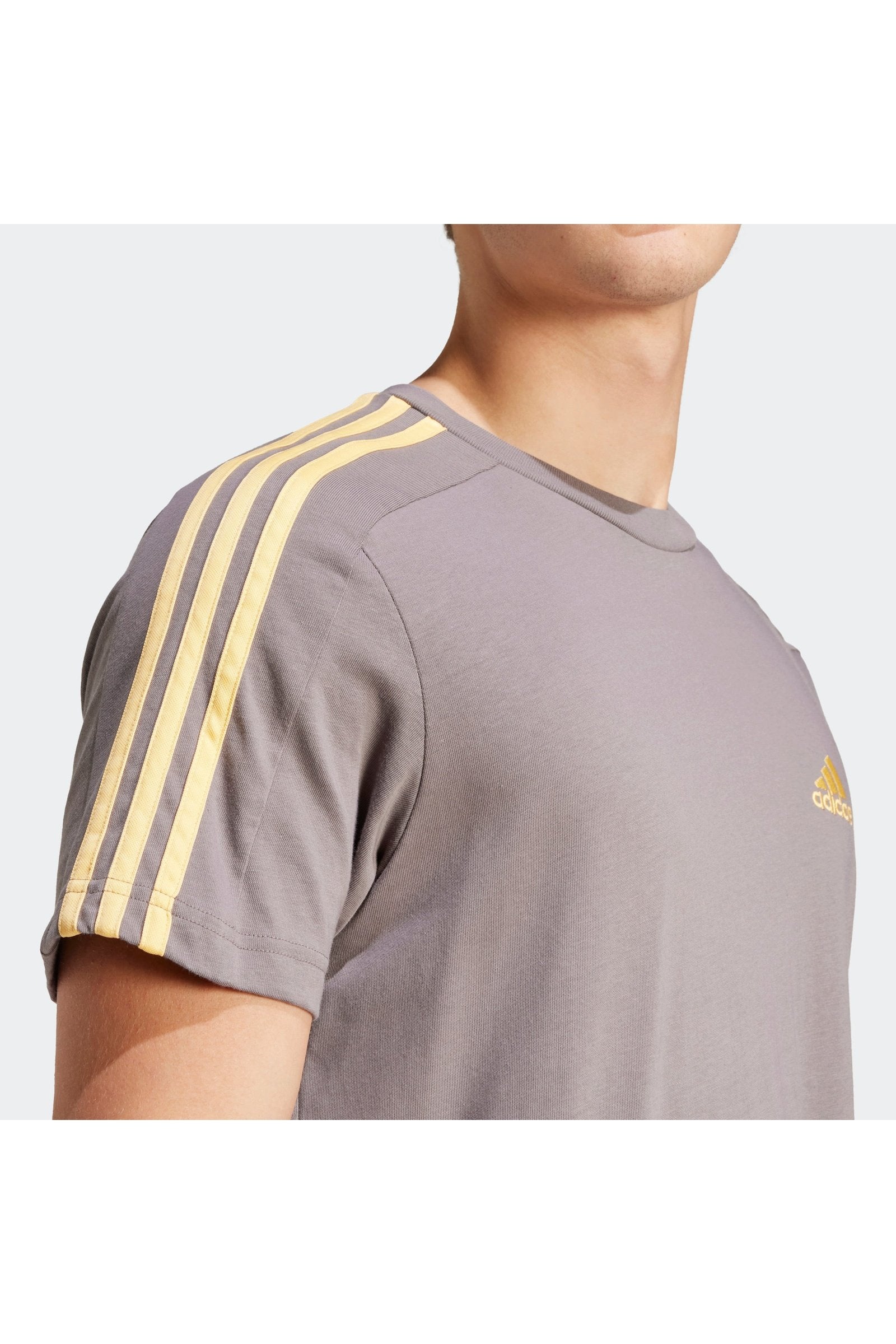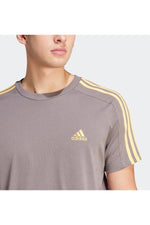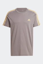 טישירט לגברים ESSENTIALS SINGLE 3 STRIPES בצבע פחם