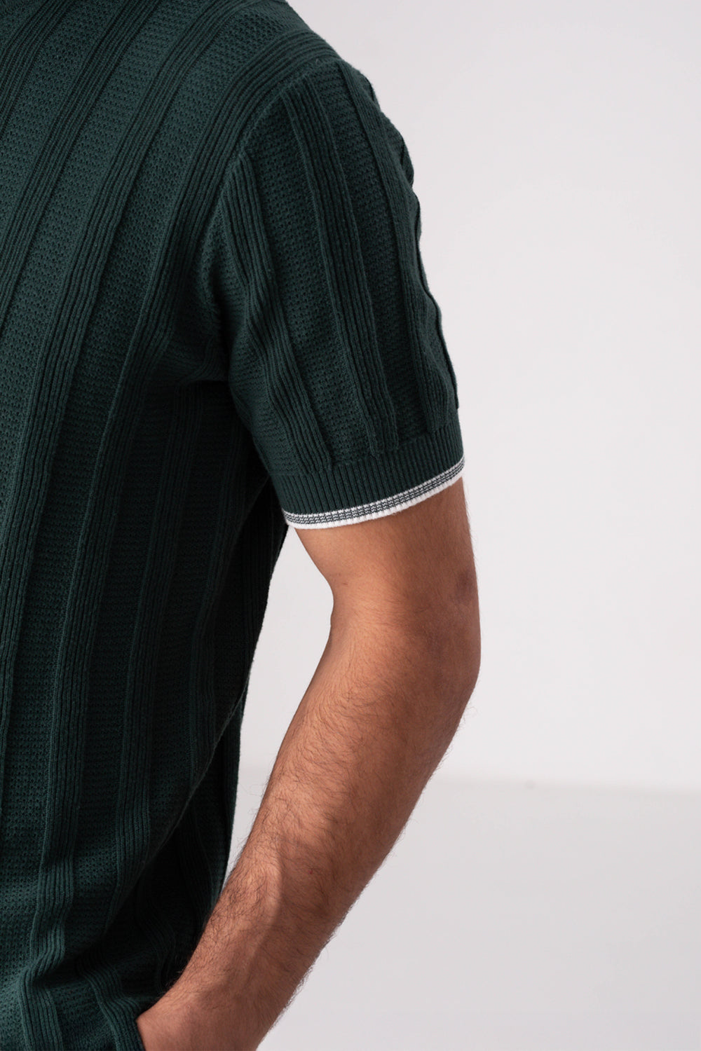סריג פולו מבית המותג KENNETH COLE לגברים, מבד דק ונוח, בדוגמת פסים, שרוולים קצרים וצווארון עגול.