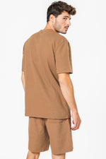 חולצת טישירט קצרה בצבע חום מבית המותג DELTA בטקסטורת וואפל נעימה בגזרה קלאסית עם שרוולים קצרים וצווארון עגול.
