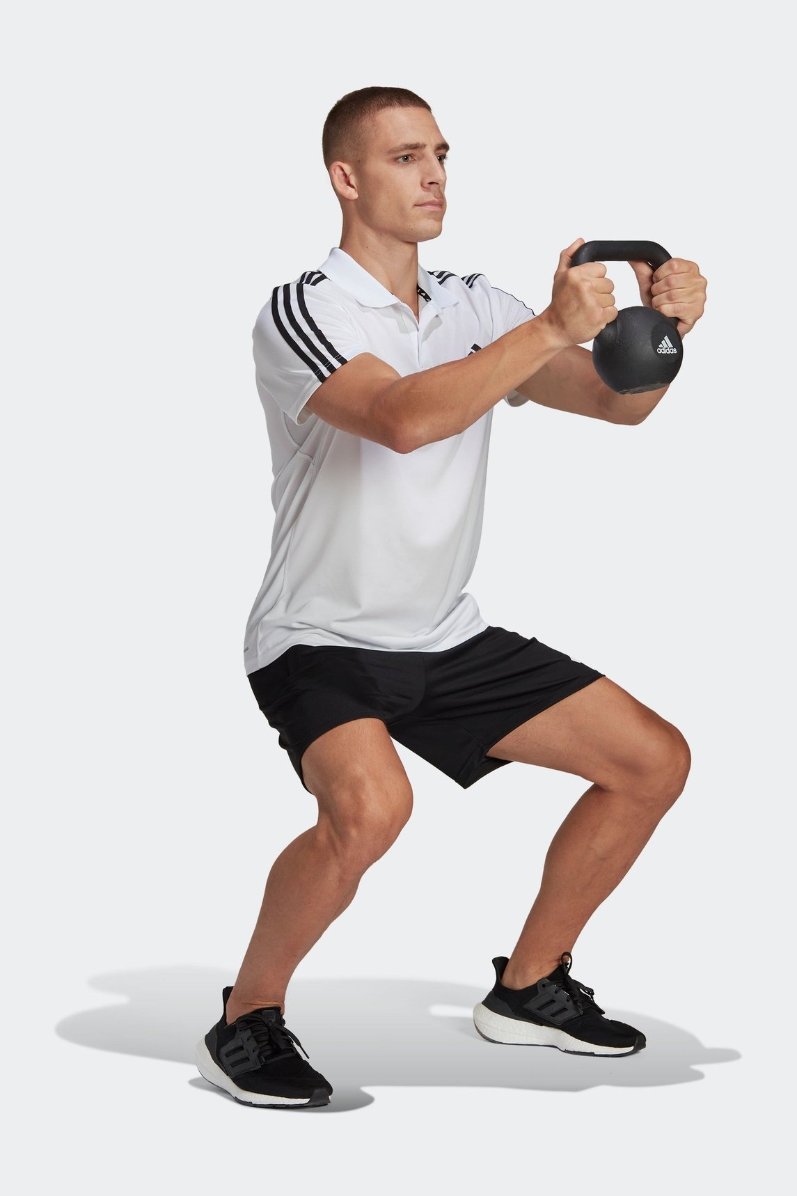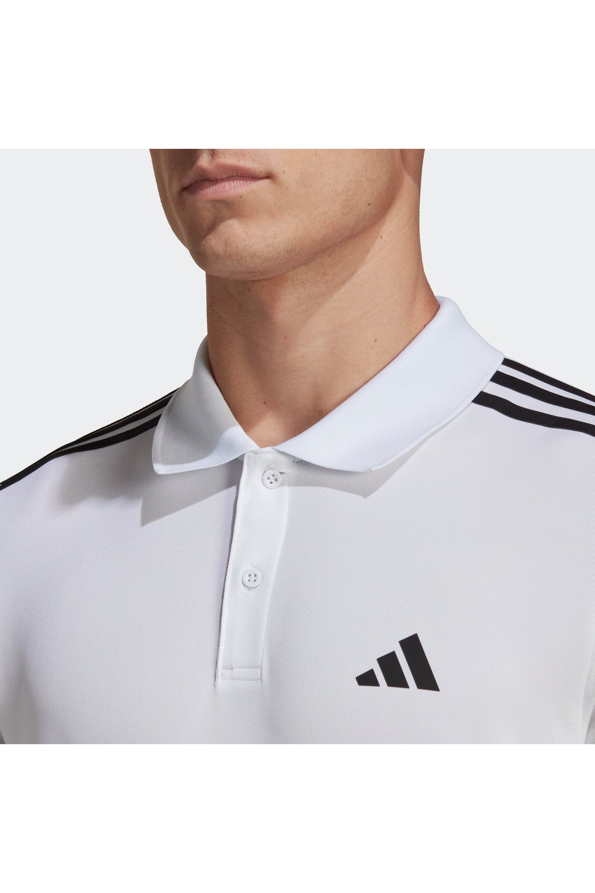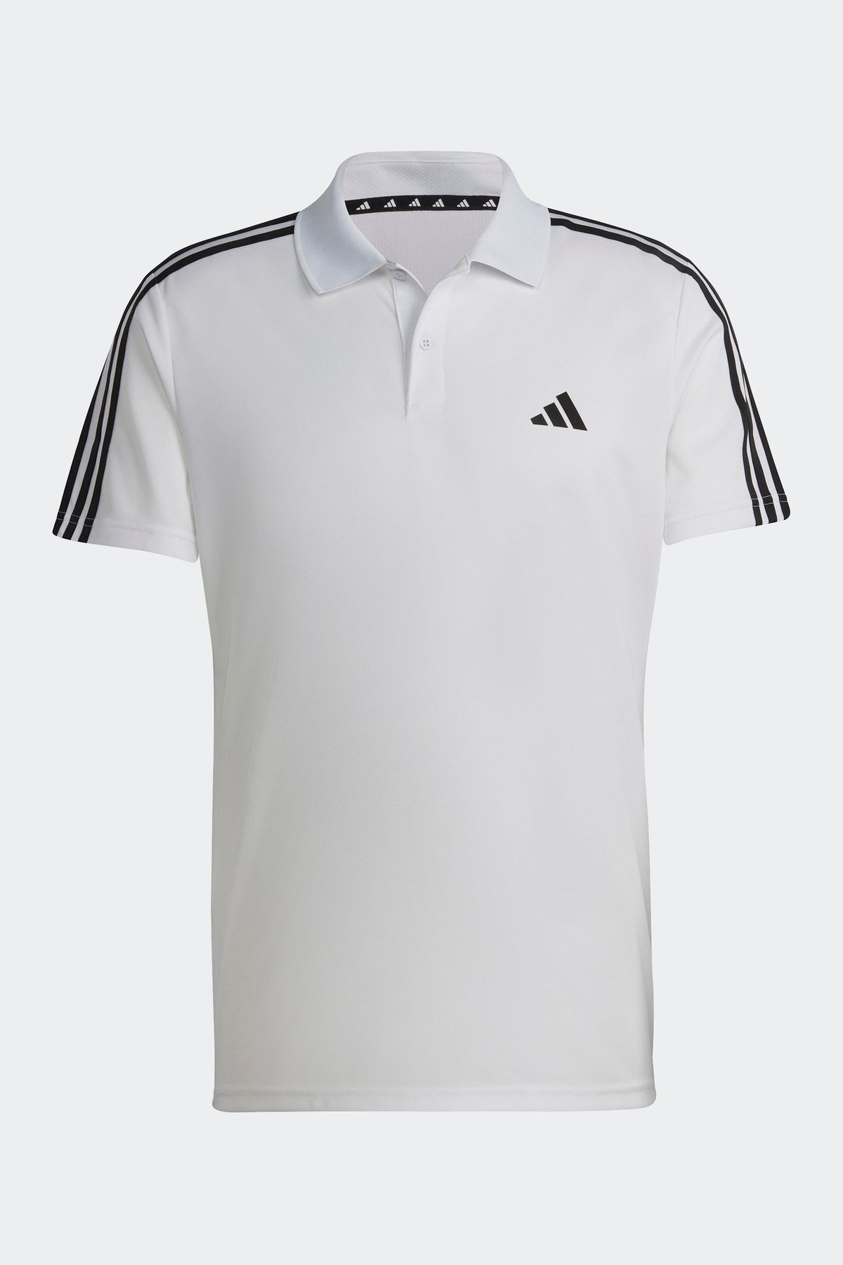 חולצת פולו לגברים TRAIN ESSENTIALS PIQUÉ 3-STRIPES בצבע לבן ושחור