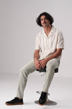 חולצה כופתרת מבית המותג KENNETH COLE לגברים, מבד קליל, מעוצבת בסגנון פסים, שרוולים קצרים וכפתורים לפתיחה וסגירה.