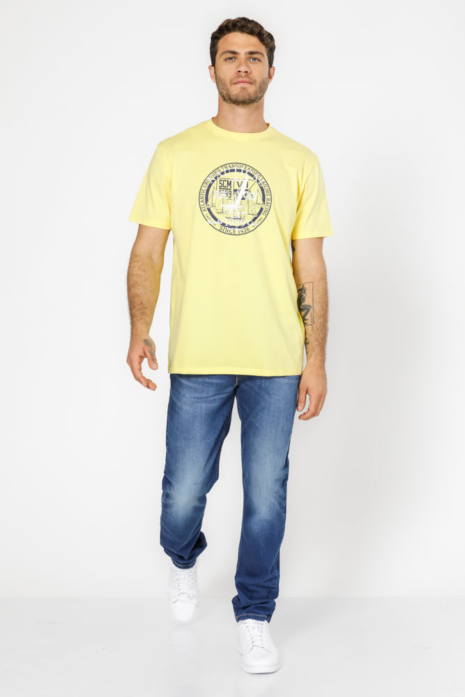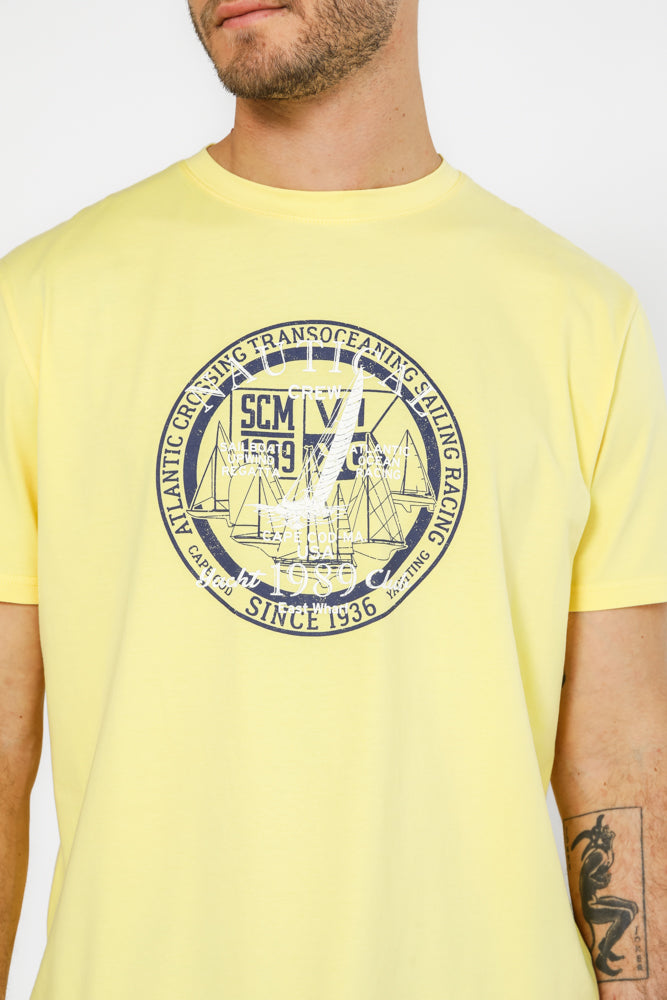 טישירט בייסיק בצבע צהוב עם הדפס