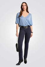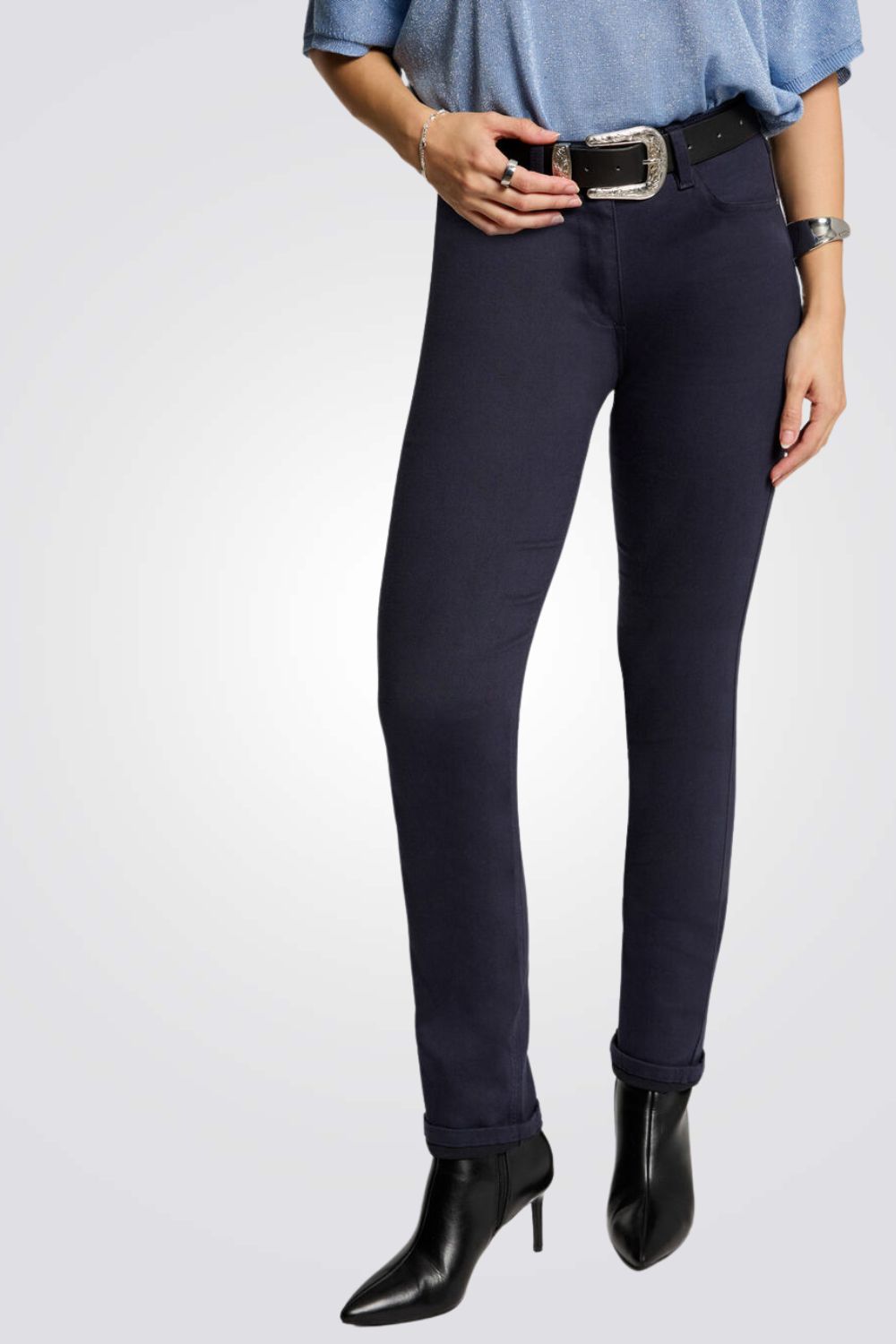 מכנסיים ארוכים לנשים מבית המותג MORGAN, בגזרה ישרה, עם 5 כיסים וסגירת רוכסן וכפתור.