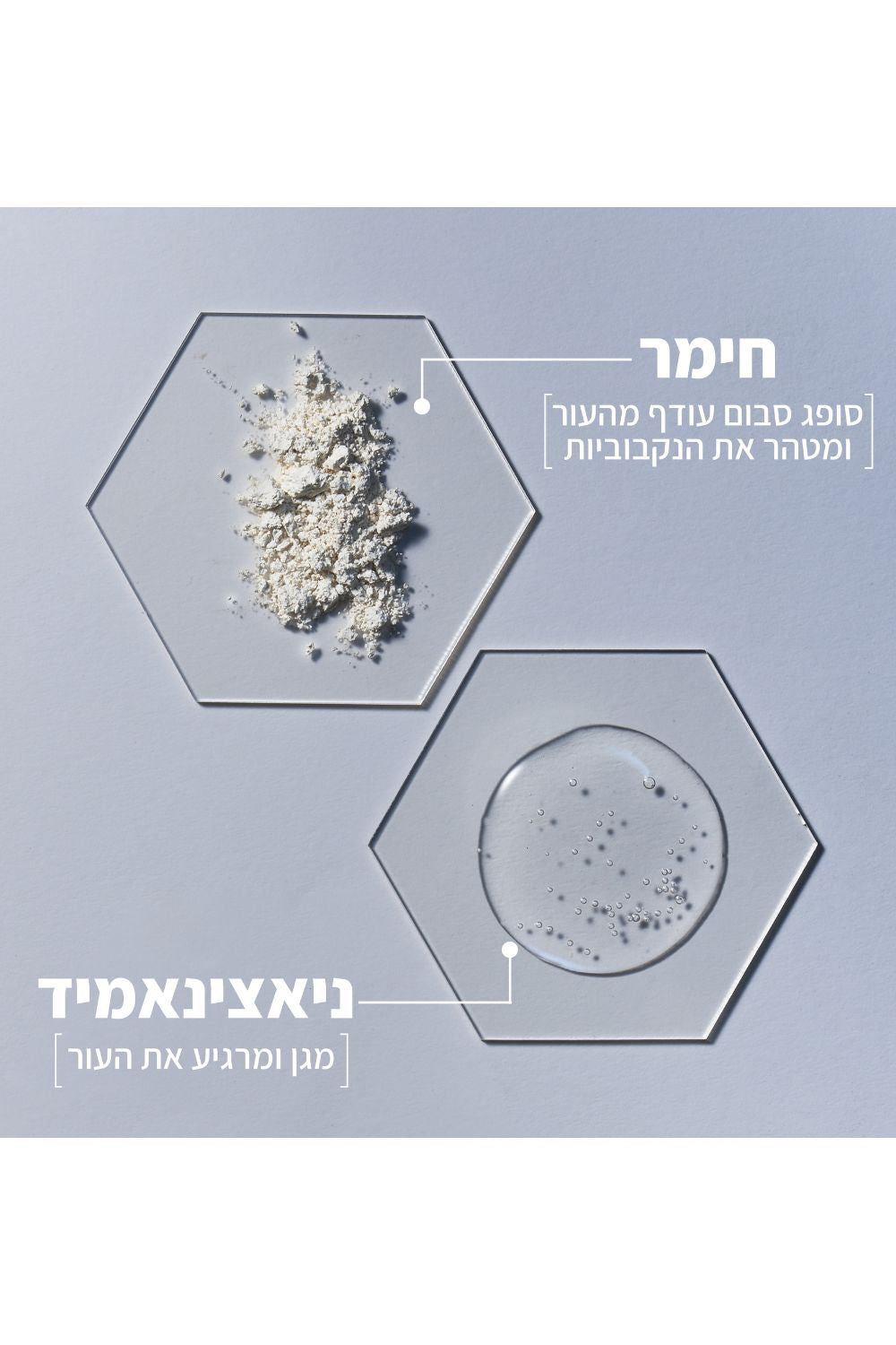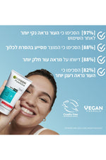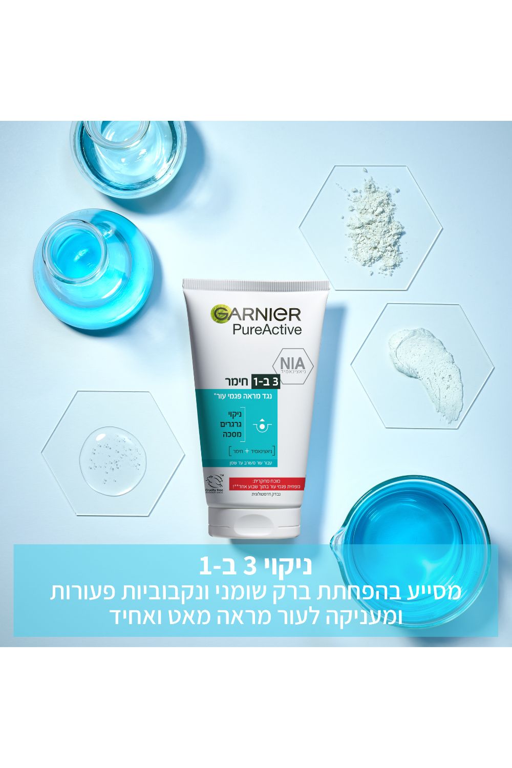 יעילות מוכחת: שימוש במשך 7 ימים מסייע במניעת הופעת פגמי העור המוצר פותח במיוחד לסיוע בטיפול בפגמי עור ובעור שומני. תכשיר 3 ב-1 של GARNIER מתאים לך, אם עורך מעורב עד שמן, בעל נקודות שחורות, ברק ופגמי עור. ייחודיות: התכשיר מעניק 3 יתרונות במוצר אחד: ניקוי: התכשיר מכיל אבץ, ידוע ביכולתו לנקות בצורה יסודית את העור ולסייע בהעלמת הפגמים ובהסרת תאי עור מתים. גרגרים: התכשיר מכיל גרגרי אבן ספוג, לקילוף עדין של העור וניקוי עמוק של הנקבוביות. מסכה: התכשיר מכיל חמר, הידוע בשל תכונות ההרגעה והספיגה שלו, ובכך מסייע הפחתת הברק בעור. הכוח המינרלי המשולש לפעולה משולשת נגד פגמים