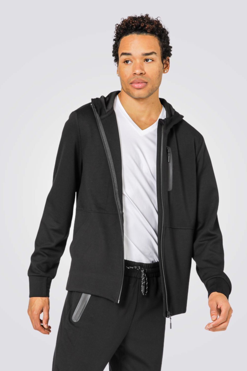 ג’קט ארוך מבד סקובה דק וקליל. קפוצ’ון מחובר, סיומת מנג’ט בשרוולים, רוכסן קדמי וכיסים צדדיים לנוחות מירבית.
