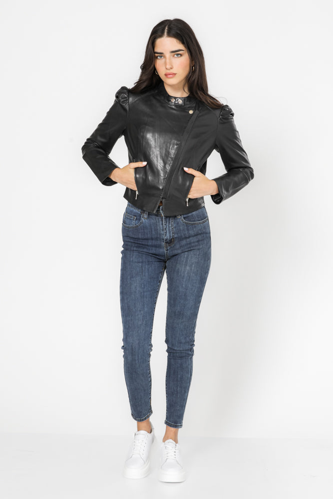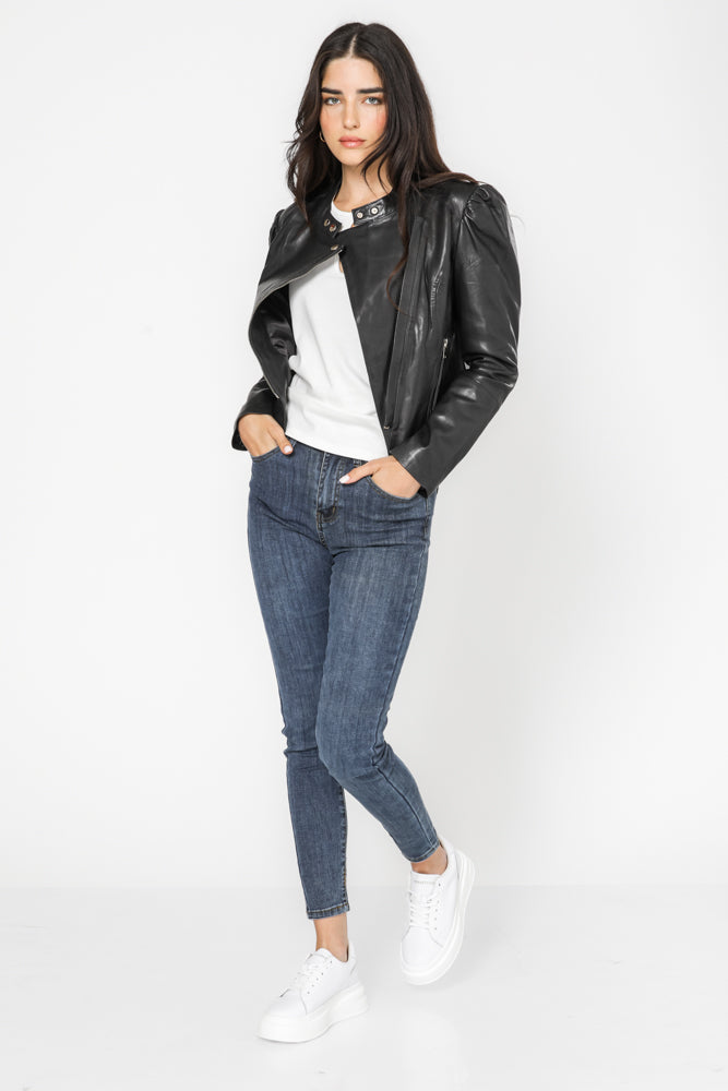עם כיסים קדמיים עם סגירה ברוכסן, צווארון עגול.