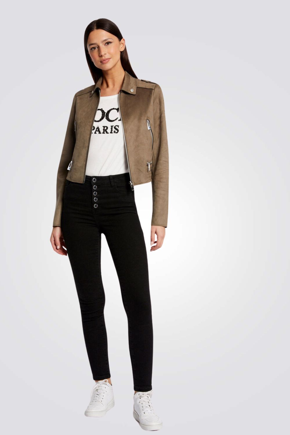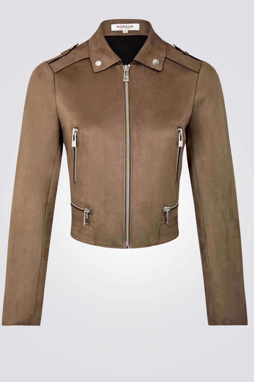 ג'קט מבית המותג MORGAN. ג'קט בעל שרוולים ארוכים וסגירת רוכסן עם צווארון דש במראה זמש ,רוכסנים בצדדים ולשוניות בכתפיים , סופר רך ונעים למגע בדיוק מה שאת צריכה בארון שלך לעונה זו. ניתן לשלב עם חצאית סריג וטישירט חלקה.