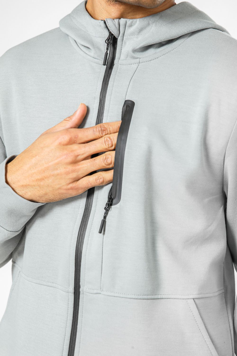ג’קט ארוך מבד סקובה דק וקליל. קפוצ’ון מחובר, סיומת מנג’ט בשרוולים, רוכסן קדמי וכיסים צדדיים לנוחות מירבית.