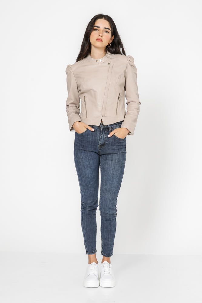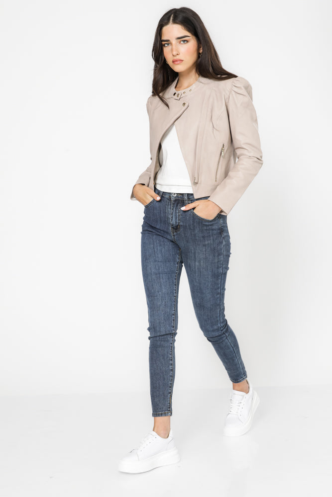 עם כיסים קדמיים עם סגירה ברוכסן, צווארון עגול.