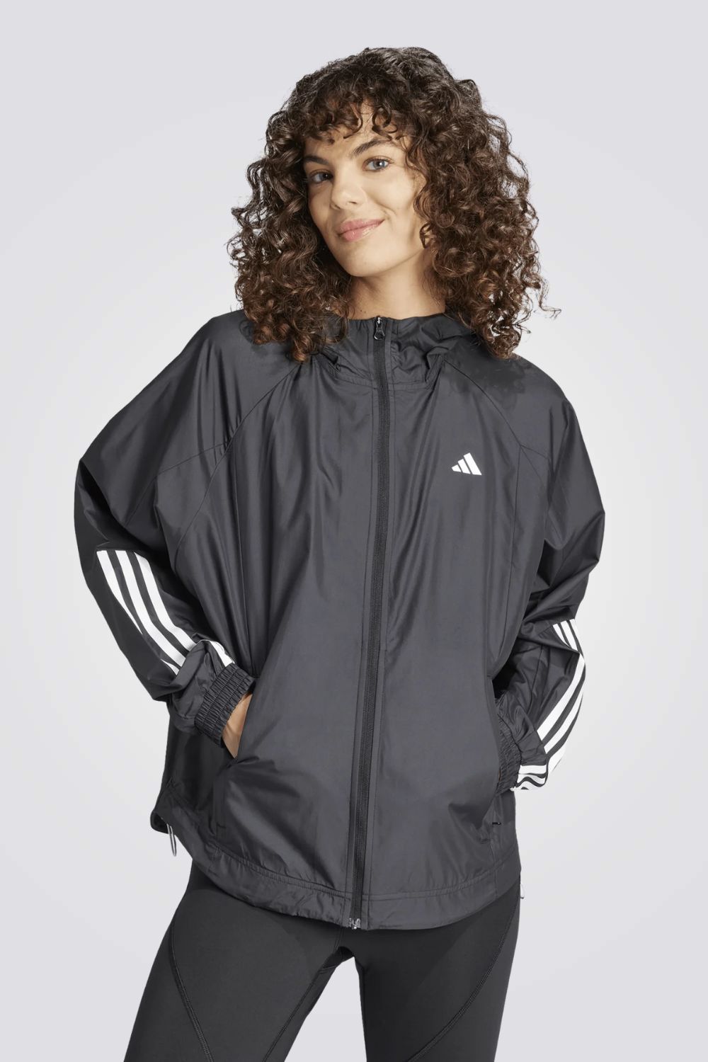 מעיל לנשים מבית המותג ADIDAS, בצבע שחור, בעל גזרה רחבה וספורטיבית . שרוולי עטלף ומכפלת מעוגלת המתכווננת באמצעות שרוך ומוסיפה מראה אופנתי. המעיל עשוי מלפחות 70% חומרים ממוחזרים.