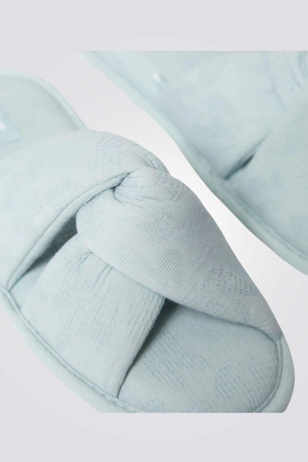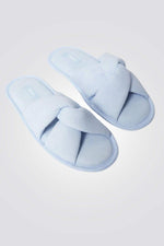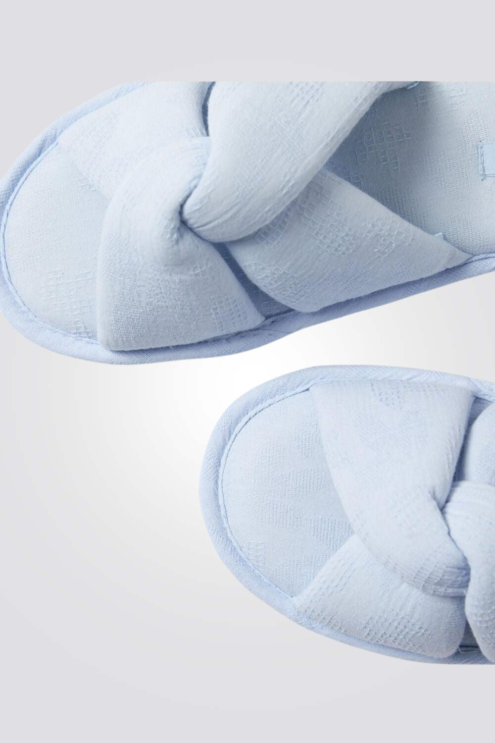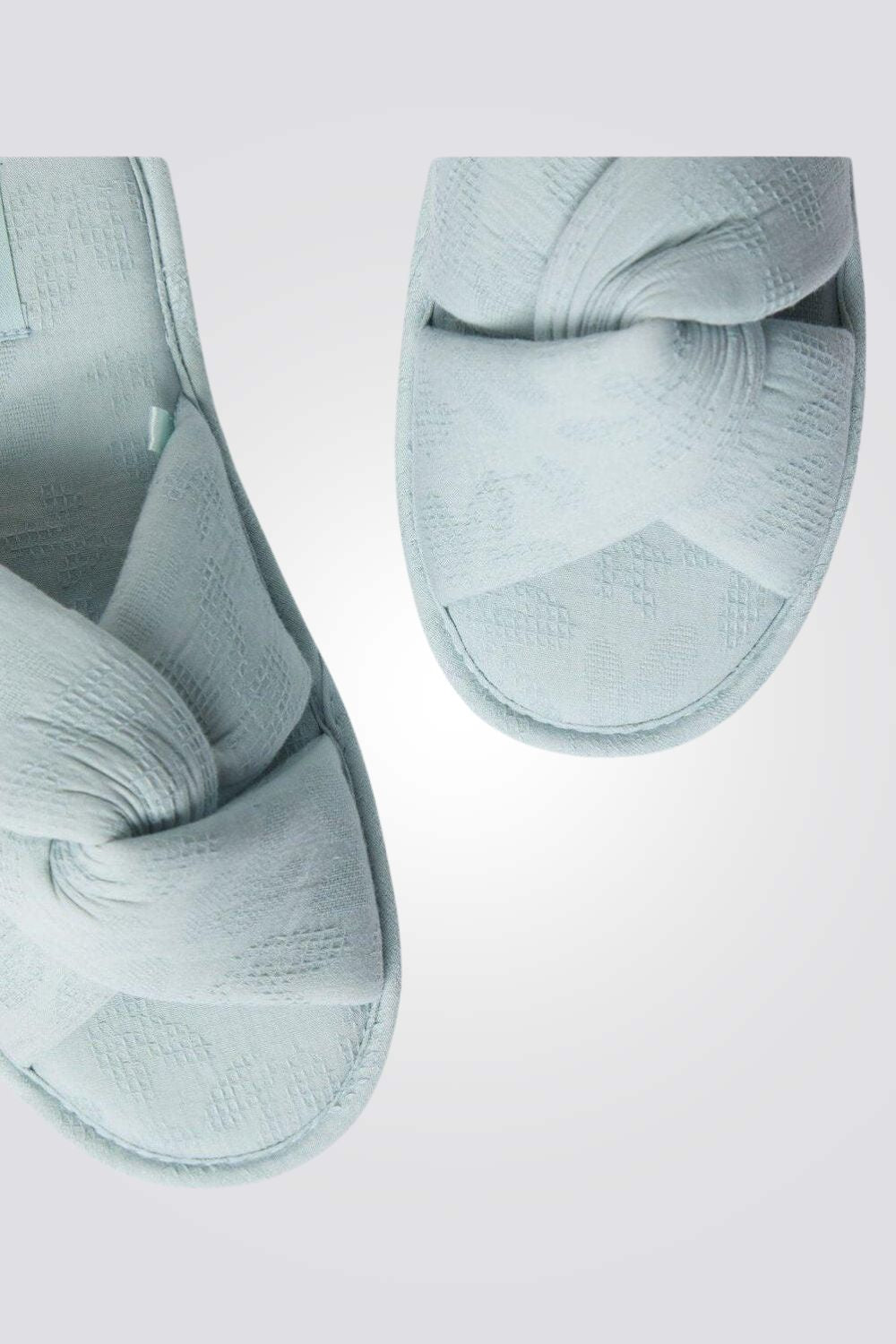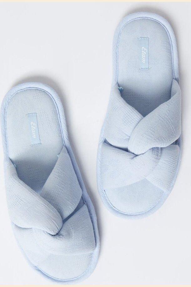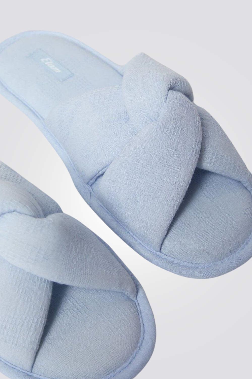 נעלי בית מבית המותג הצרפתי ETAM בגזרת כפכפים פתוחים עם רצועות רחבות מוצלבות העוטפות את כף הרגל.
