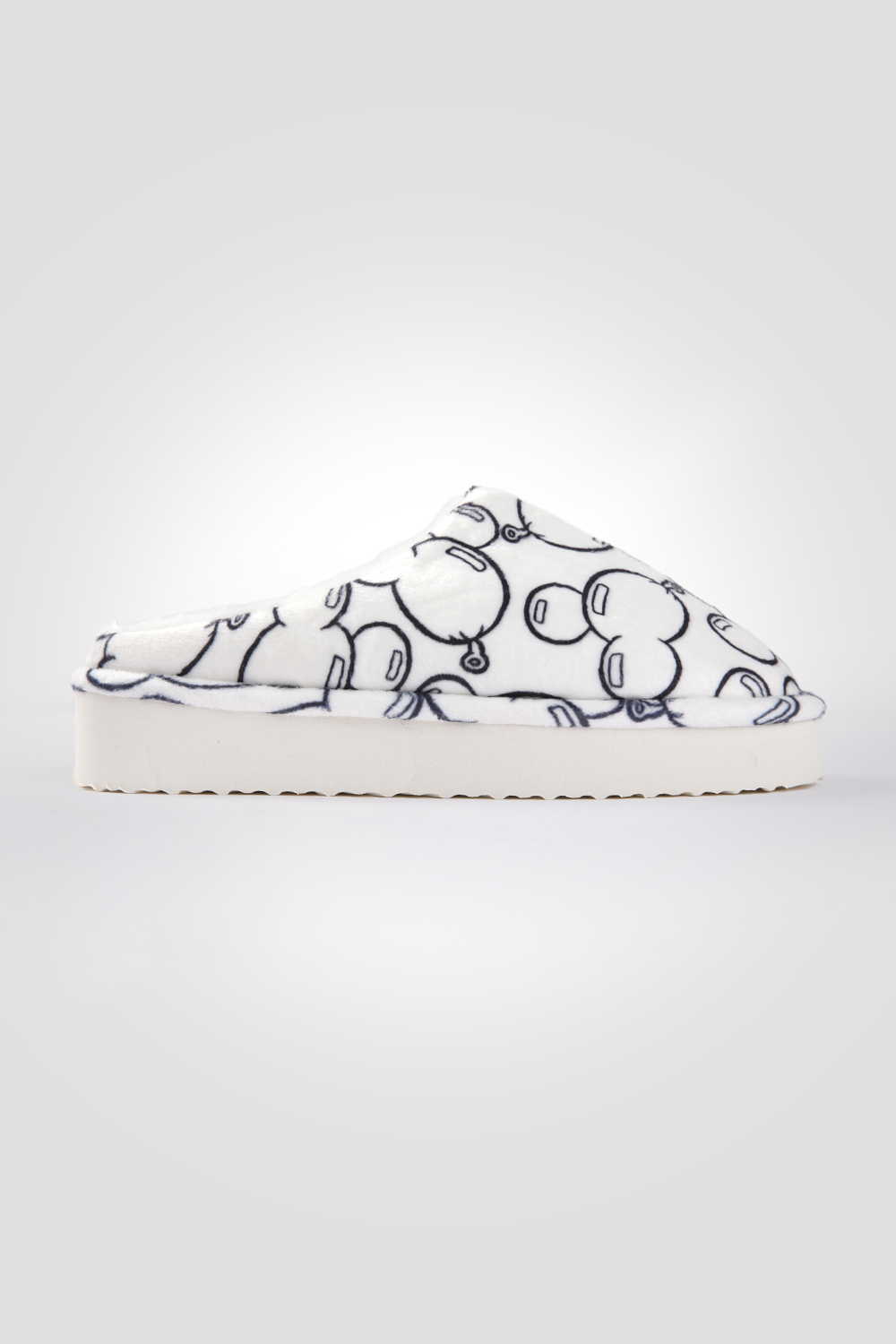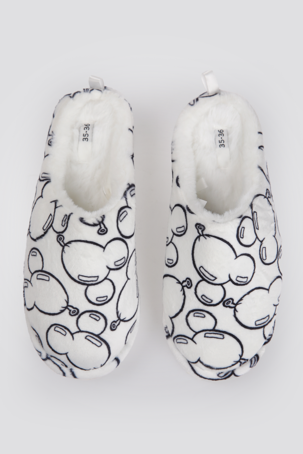 נעלי בית לנשים מבית המותג DISNEY העשויות מבד קטיפתי ונעים בגזרת כפכף סגור, עם סוליה עבה וקשיחה במוטיב מיקי מאוס.