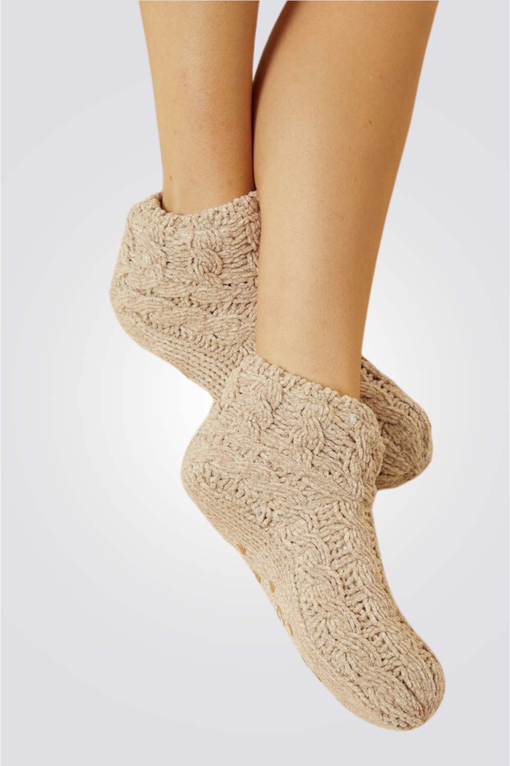 גרבי בית באורך קצר מבית המותג ETAM, סרוגות בדוגמת צמות, עם ביטנה פלאפית חמימה וסיליקון בתחתית למניעת החלקה.