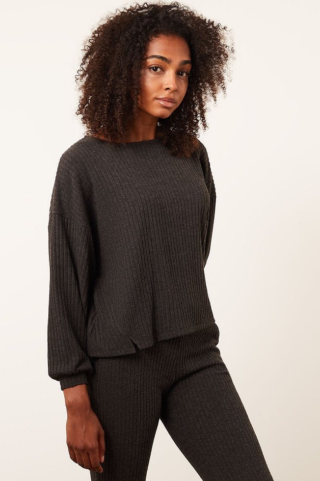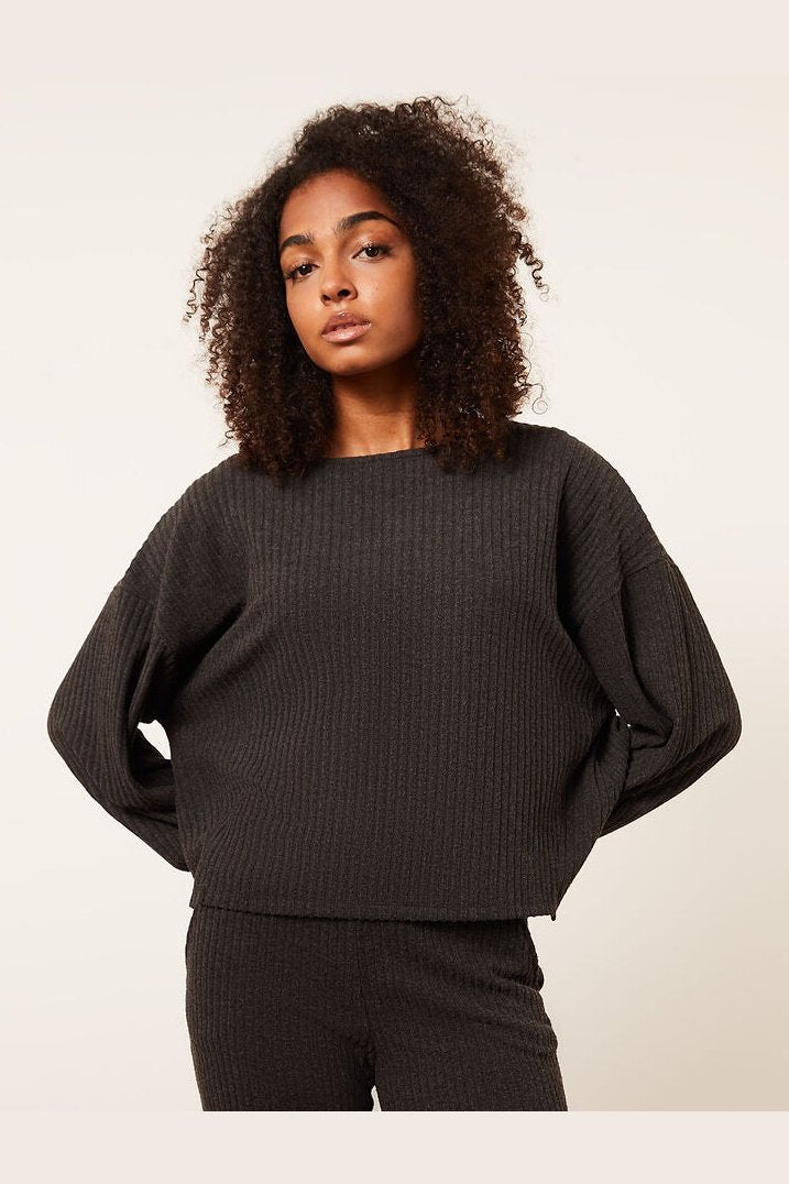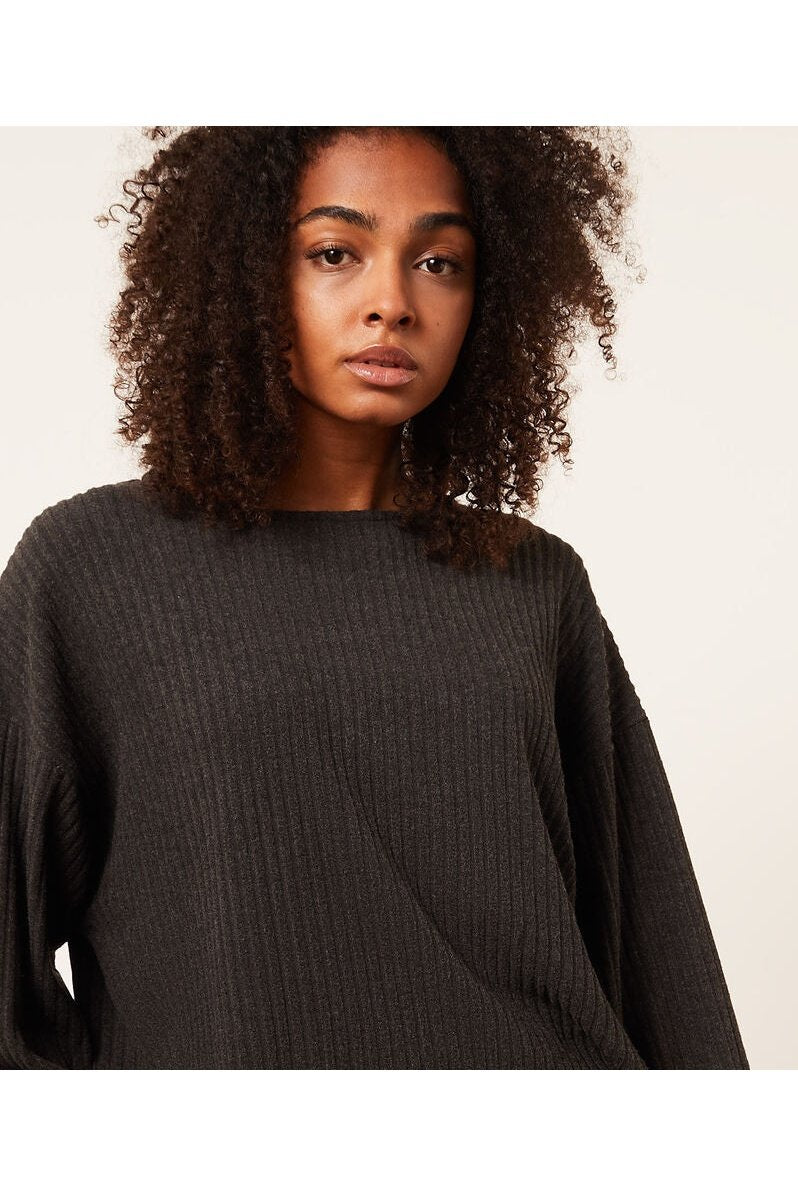 חולצת סריג של המותג ETAM, עשויה בד רך ומלטף ארוג בדוגמת פסים, עם שרוולים ארוכים בסיומת מנג'ט. מכנסיים תואמים נמכרים בנפרד. .