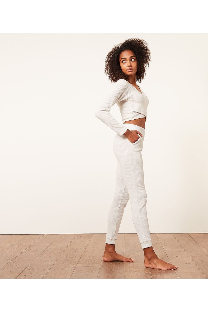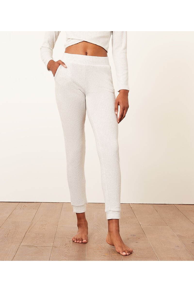 מכנסי סריג של המותג ETAM, עשויים בד רך ומלטף ארוג בדוגמת פסים, גזרה צרה עם מותן אלסטית רכה ושני כיסים, בסיומת מנג'ט בתחתית הרגל. חולצה תואמת נמכרת בנפרד.