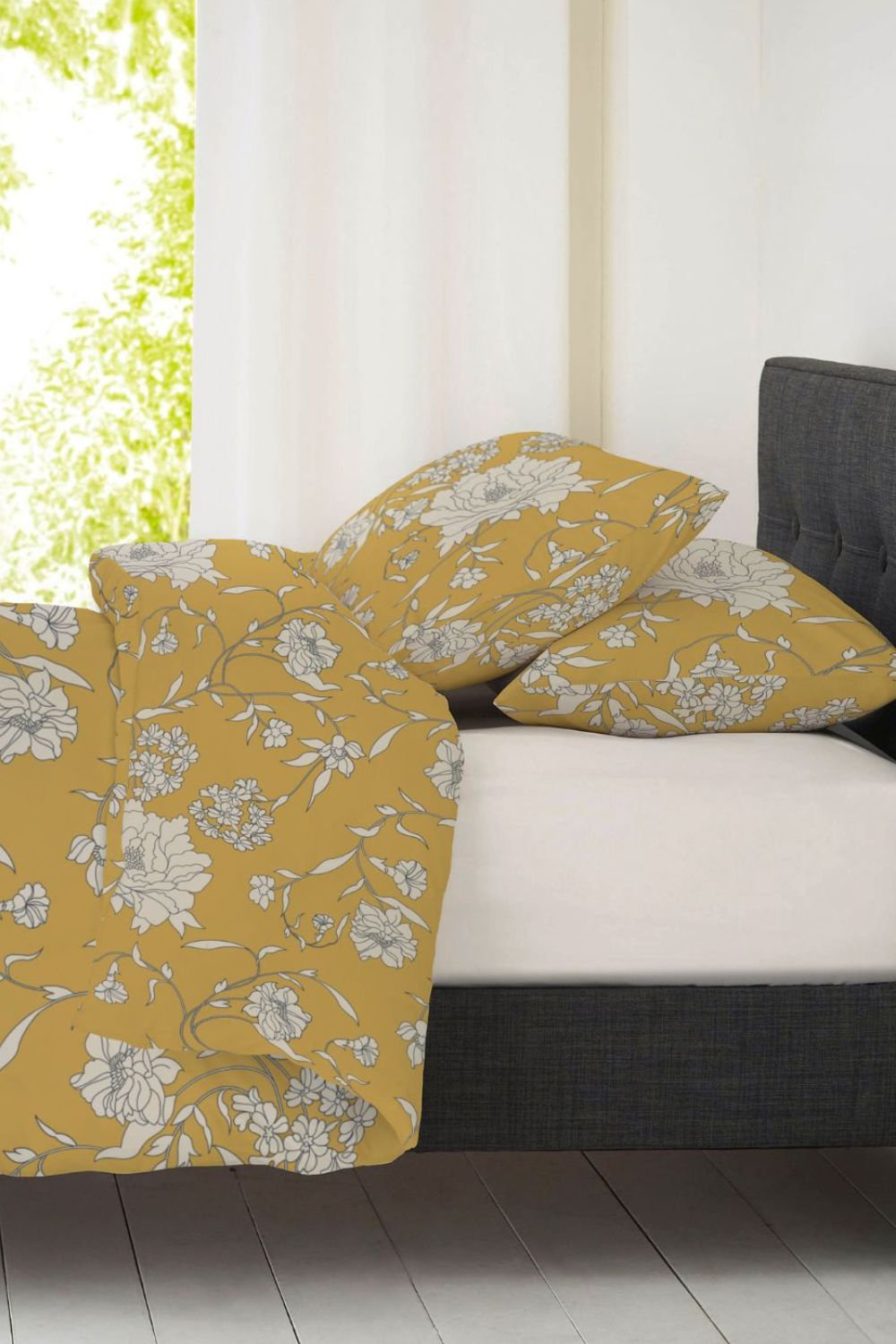 סט מצעים מיטת יחיד 90/200 ס"מ כותנה דגם FLOWER בצבע חרדל