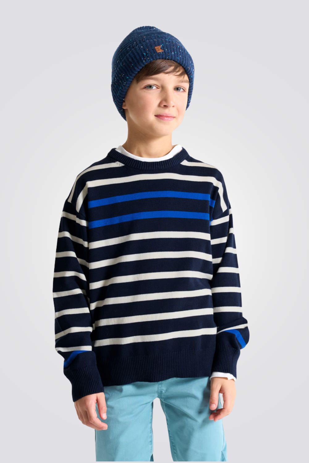 סוודר לילדים בצבע כחול עם פסים | אוקיידי