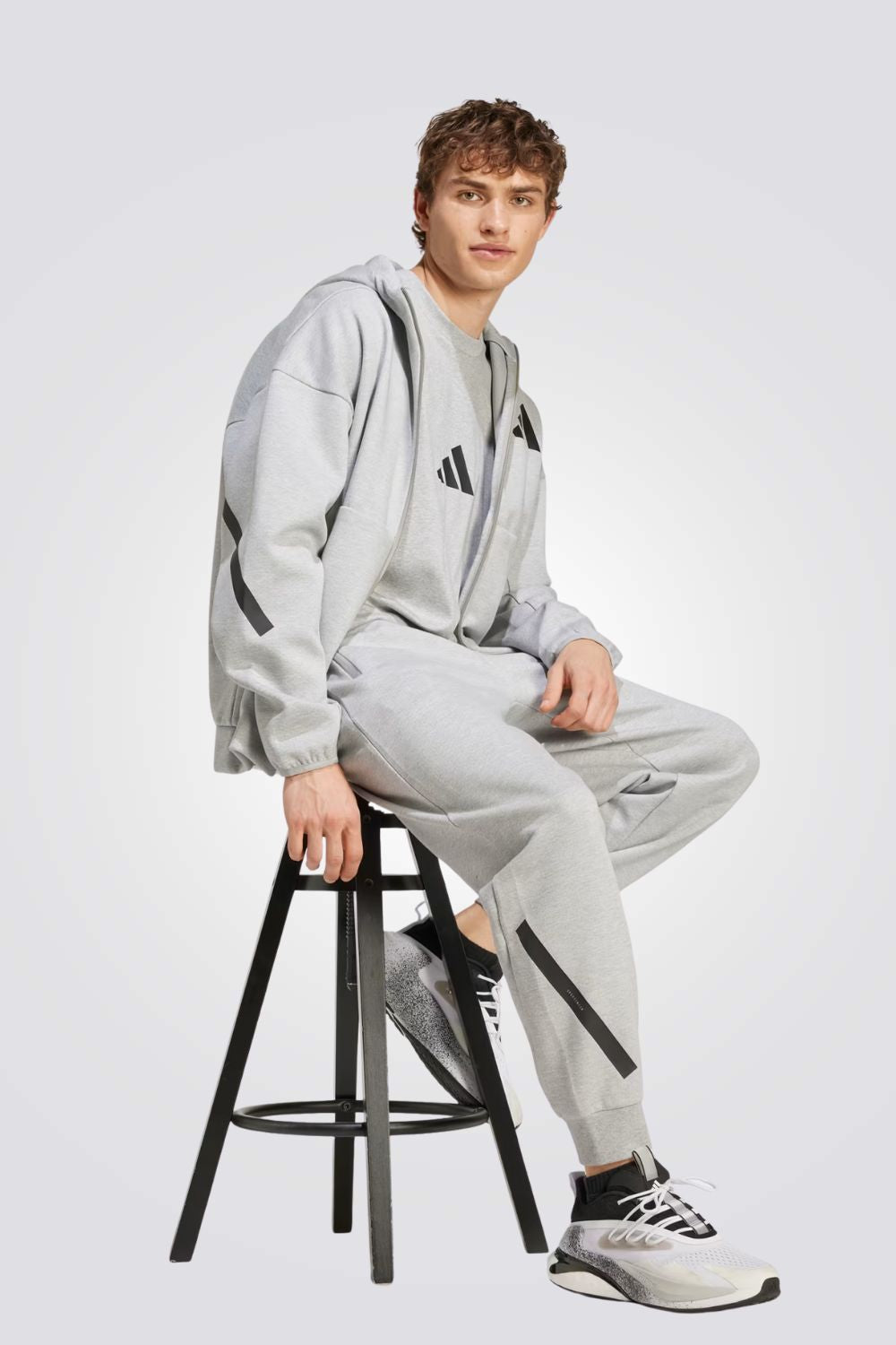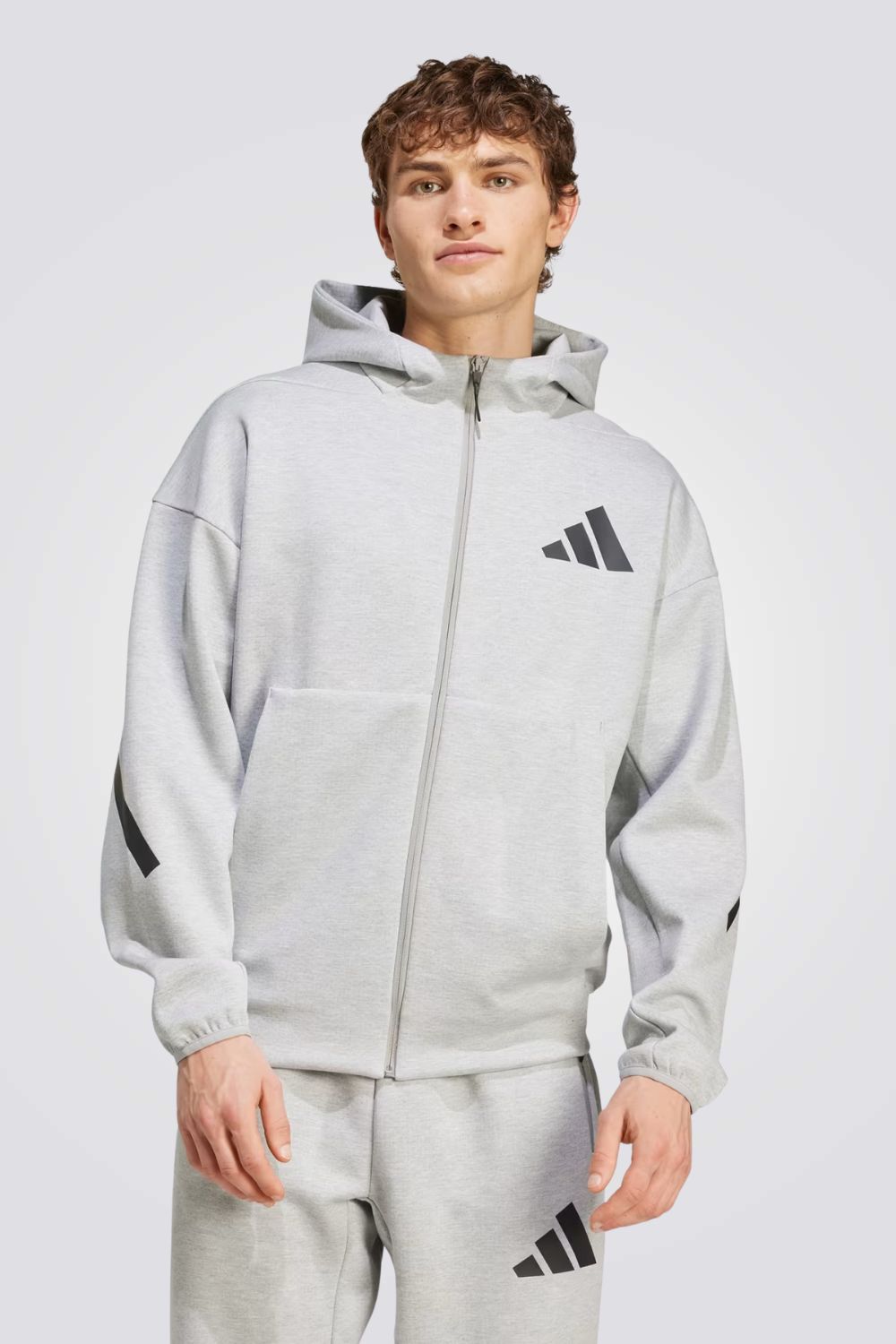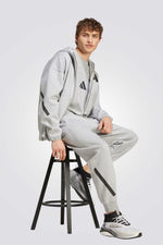 סווטשירט לגברים מבית המותג ADIDAS, בצבע אפור ,עם רוכסן מלא וקפוצ'ון , עשוי מבד DOUBLEKNIT בשלוש שכבות של בד שמשמר חום ונעים למגע. עשוי מתערובת של לפחות 70% חומרים ממוחזרים, כולל כיסים קדמיים עם רוכסן ולוגו המותג.