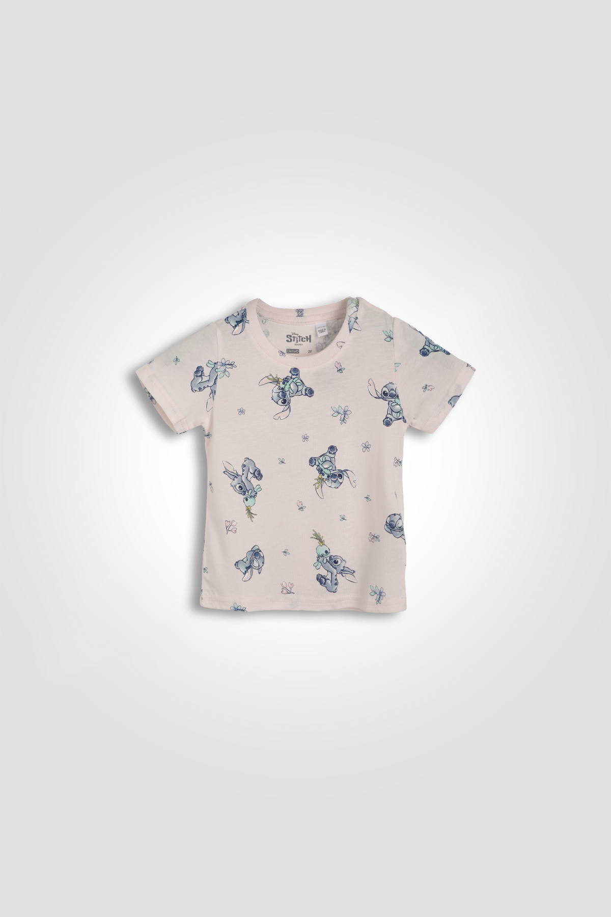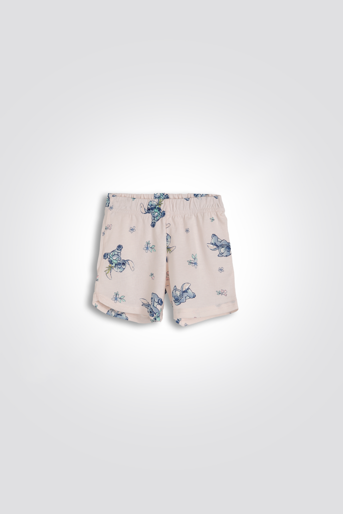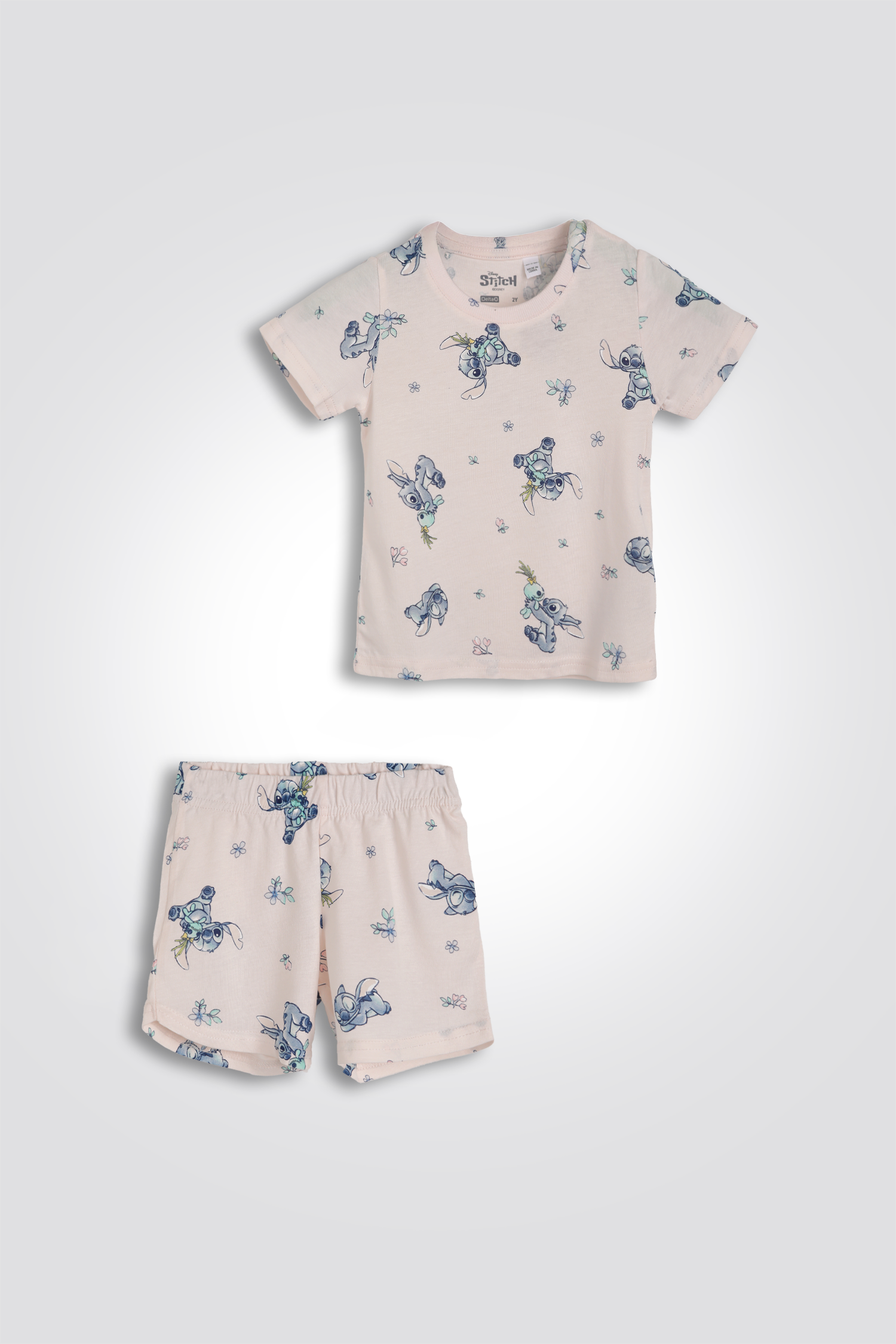 פיג'מת קיץ לילדות מבית המותג DELTA העשויה מבד דק ונעים עם הדפס של סטיץ’. חולצה עם צווארון עגול ושרוולים קצרים ומכנסיים קצרים תואמים עם גומי במותניים.
