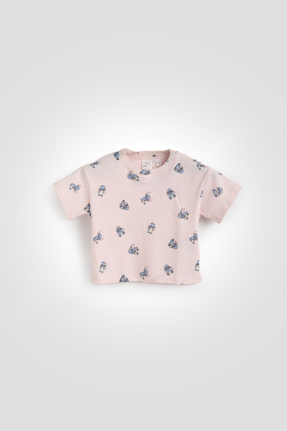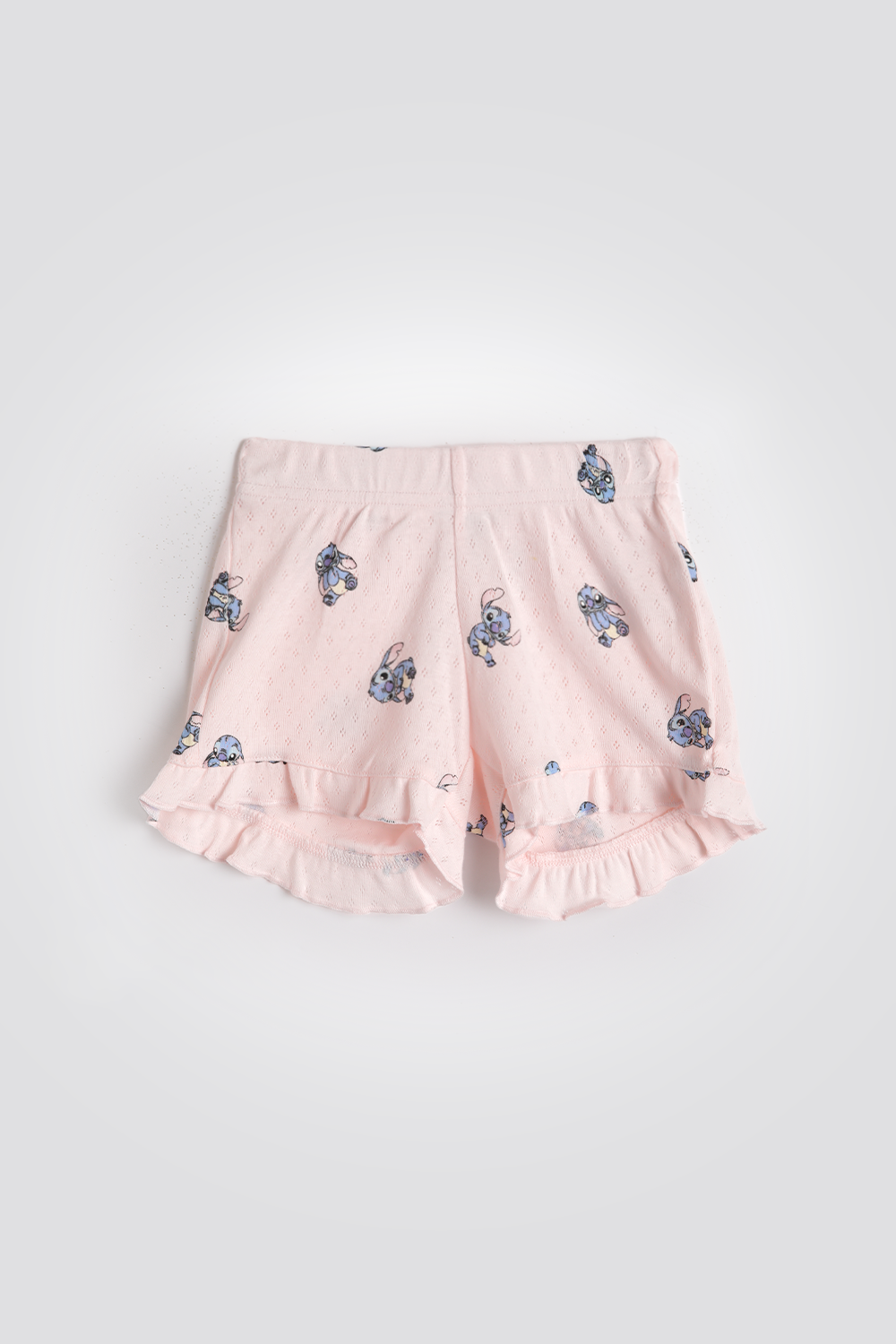 סט פיג’מה קצרה לילדות מבית המותג DELTA העשויה מבד כותנה פוינטל בהדפס מתוק של סטיץ’. חולצה עם צווארון עגול ושרוולים קצרים ומכנסיים קצרים תואמים עם גומי במותניים וסיומת מלמלה.